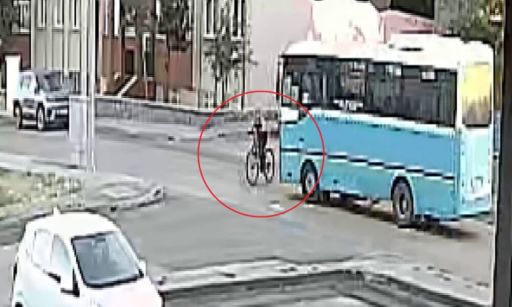 Halk otobüsünün çarptığı bisikletli Beytullah ağır yaralandı; kaza kamerada