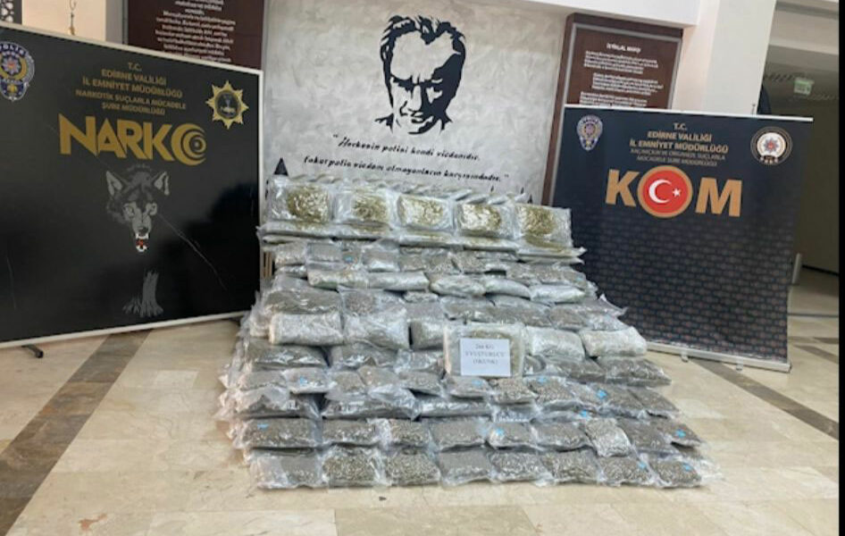 Edirne İl Emniyet Müdürlüğü Kaçakçılık ve Organize Suçlarla Mücadele, Narkotik ve İstihbarat Şube Müdürlüğü ekipleri, yurt dışından gelecek bir TIRda yüklü miktarda uyuşturucu bulunduğunu belirledi. Takibe alınan TIR, Bulgaristana açılan Hamzabeyli Sınır Kapısından giriş yaptıktan sonra Gümrük Müdürlüğü ekipleri ile koordineli aranmaya alındı. Narkotik köpeği Kongar ile dorsede yapılan aramada koliler içerisinde 266 kilo 489 gram skunk ele geçirildi, şoför S.S. gözaltına alındı. Emniyetteki işlemlerinin ardından adliyeye sevk edilen S.S. Uluslararası uyuşturucu madde ticareti yapma suçundan tutuklandı.