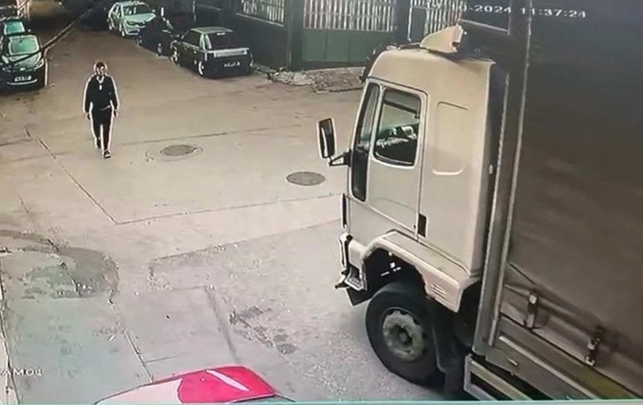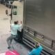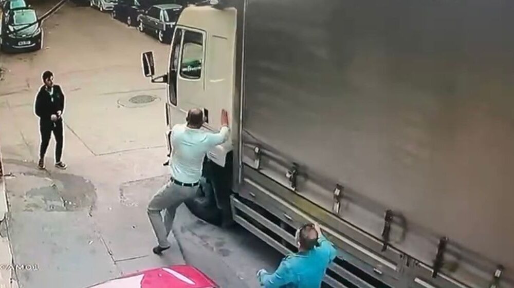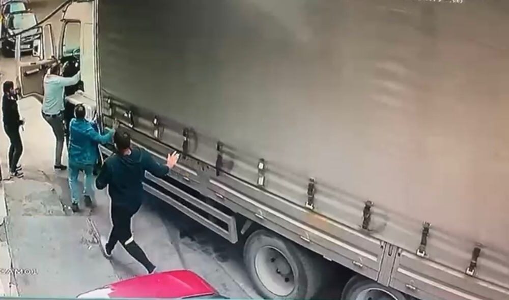 Hareket eden kamyonunu peşinden koşup durdurdu; o anlar kamerada