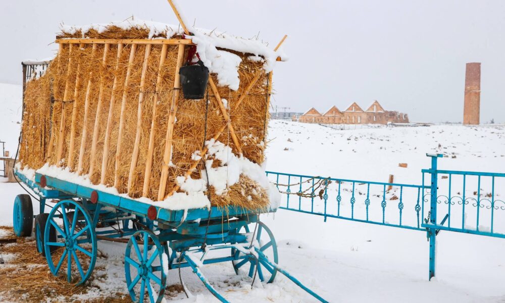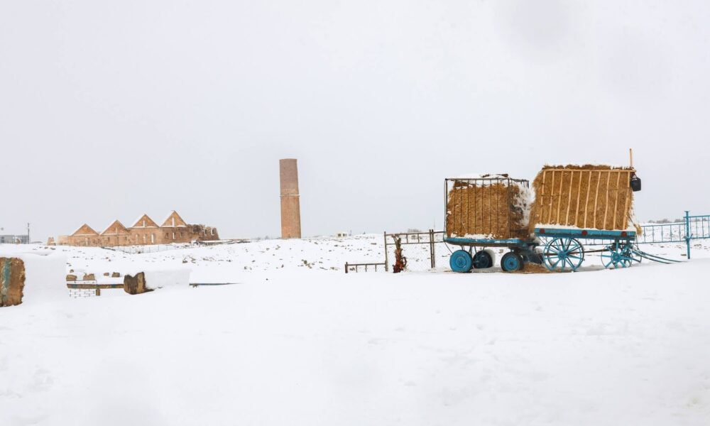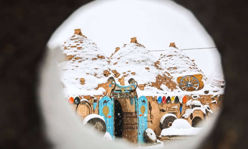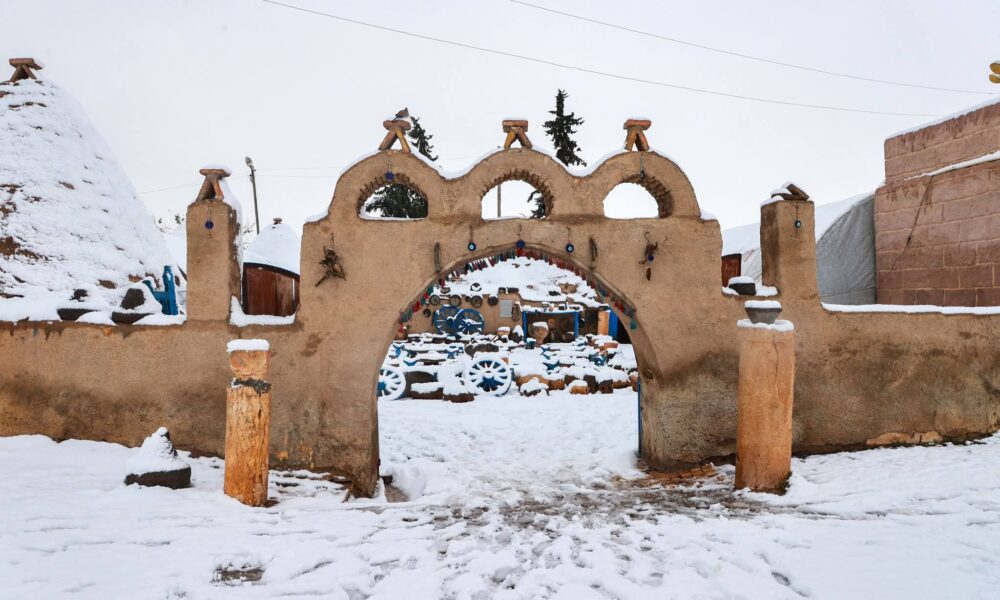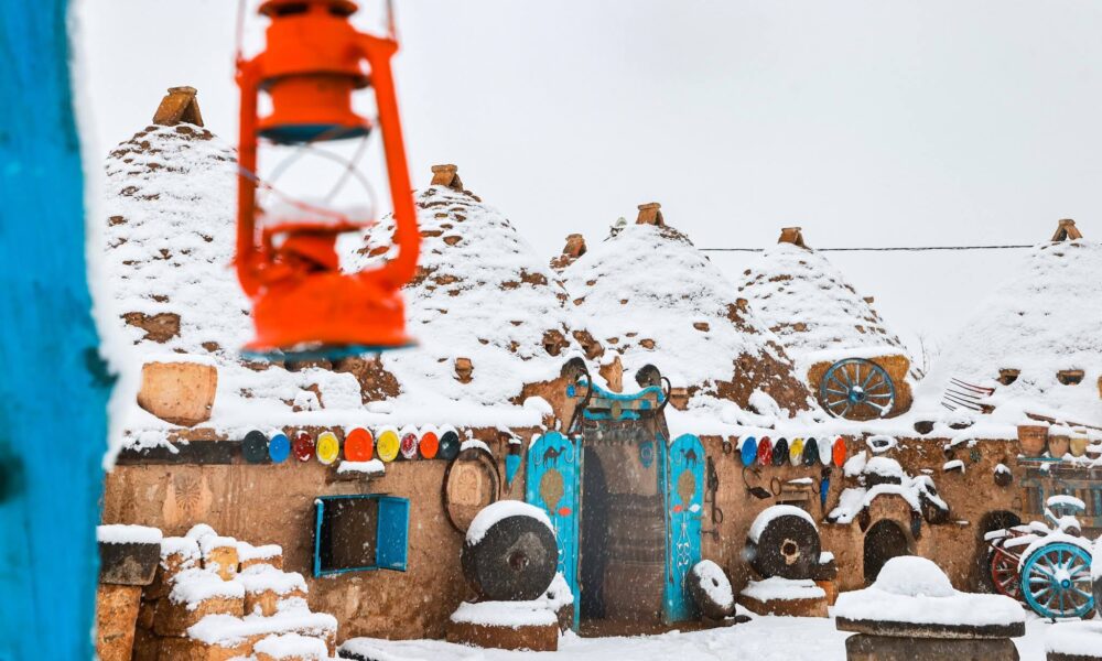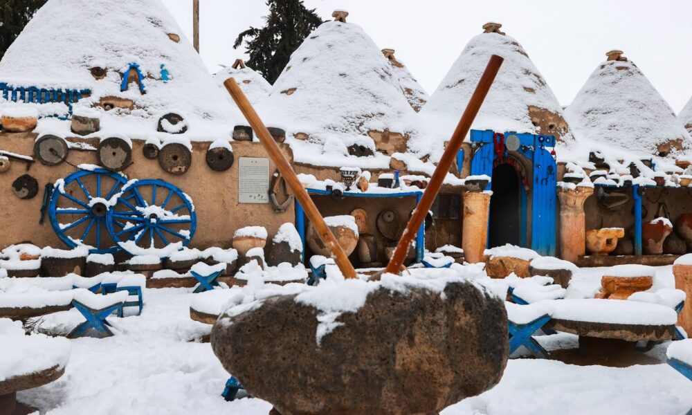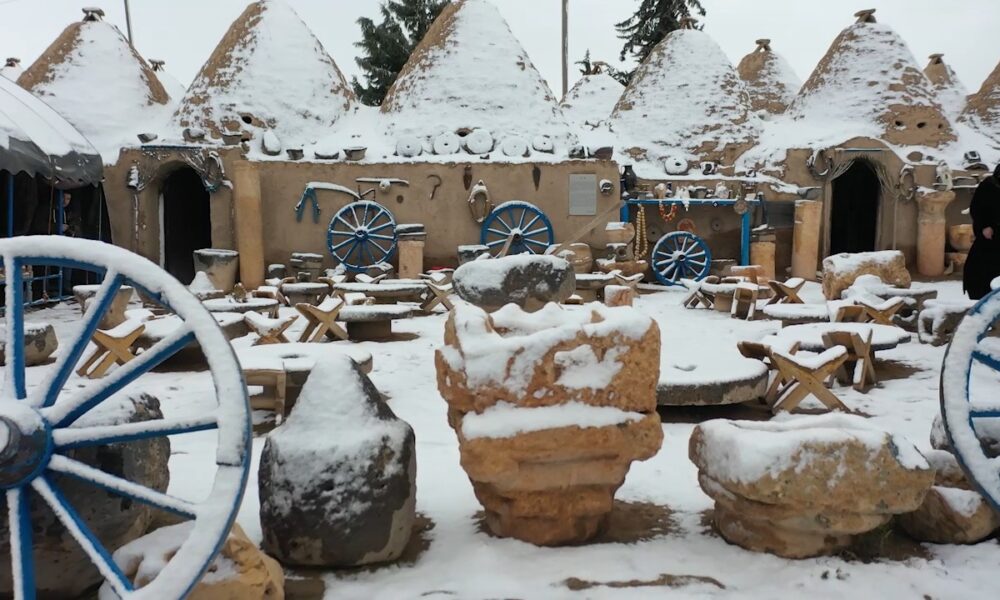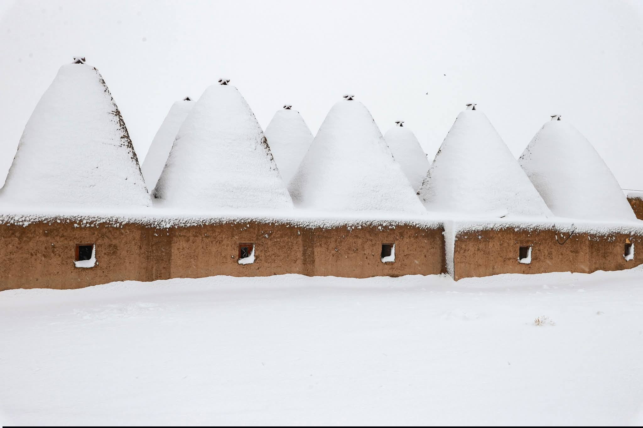 Harran’ın konik kubbeli evlerinde kar manzarası