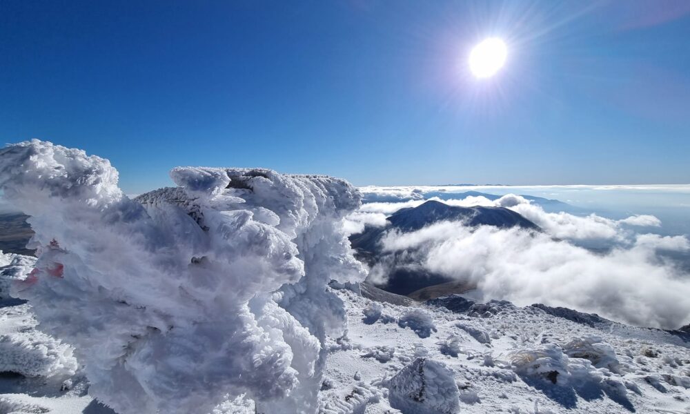 Hasan Dağı’nın zirvesine yağan kar, kartpostallık görüntüler ortaya çıkardı