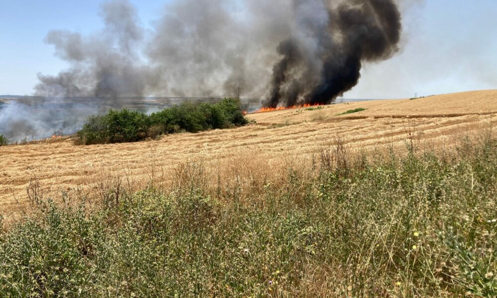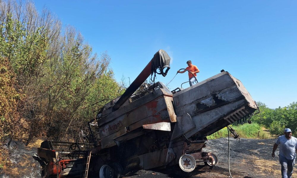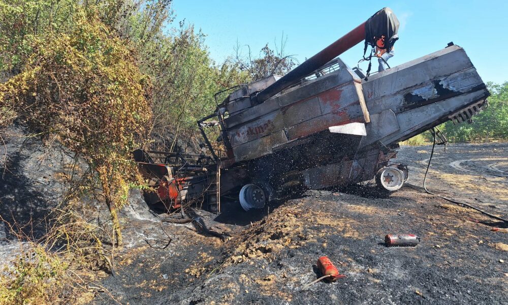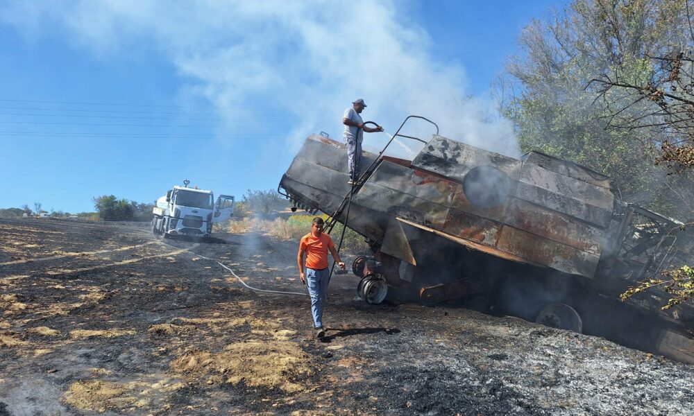 Hasat sırasında biçerdöver alev aldı, 90 dekar ekili buğday yandı