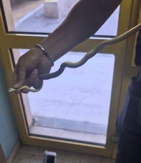 Yılan, özel ekipmanla alınarak yerleşim yerinden uzak bir bölgeye götürüldü ve doğal yaşam alanına bırakıldı.
