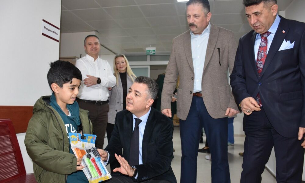 Öte yandan, Konak Kaymakamı Ediz Sürücü, Konak İlçe Milli Eğitim Müdürü Metin Ender Karabulut ve Tepecik Eğitim ve Araştırma Hastanesi Başhekimi Dr. Savaş Yakan ile hastanedeki çocukları ziyaret edip oyuncak dağıttı.