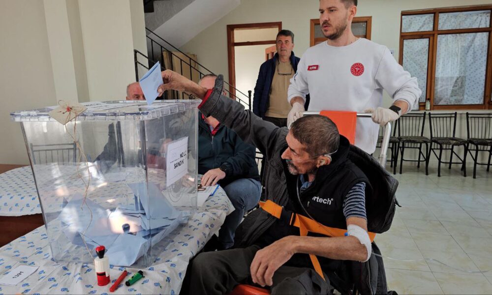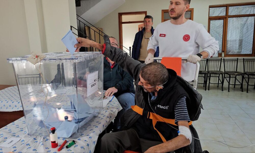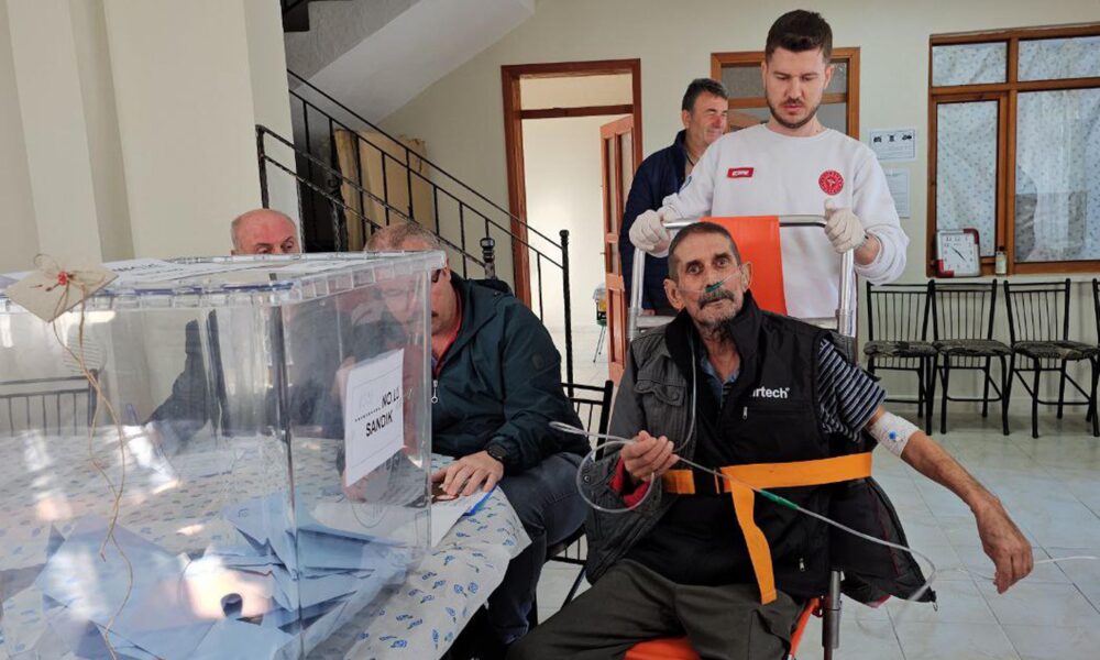 EDİRNEde tedavi gören Osman Morto (62), hastaneden nakil ambulansına alınarak, götürüldüğü Bosnaköyde oyunu kullandı.Edirne Sultan 1nci Murat Devlet Hastanesinde KOAH, tedavisi gören Osman Morto, 31 Mart 2024 Mahalli İdareler Genel Seçimlerinde oy kullanmak istediğini belirterek, hastane yönetiminden yardım istedi. Hastanede sağlık personeli tarafında hazırlanan Morto, Evde Sağlık Hizmetleri Müdürlüğü ekipleri tarafından tekerlekli sandalye ile hasta nakil ambulansına alındı. Morto, hastaneye 7 kilometre mesafedeki Bosnaköye götürüldü. Morto, burada muhtarlık binasında bulunan 1391 numaralı sandıkta oyunu kullandı. Morto, oy kullanmasını sağlayan sağlık ekiplerini teşekkür ederek, “Oyumuz millete, devlete hayırlı olsun” dedi.Morto, oyunu kullandıktan sonra yeniden ambulansla hastaneye götürülerek, tedaviye alındı.