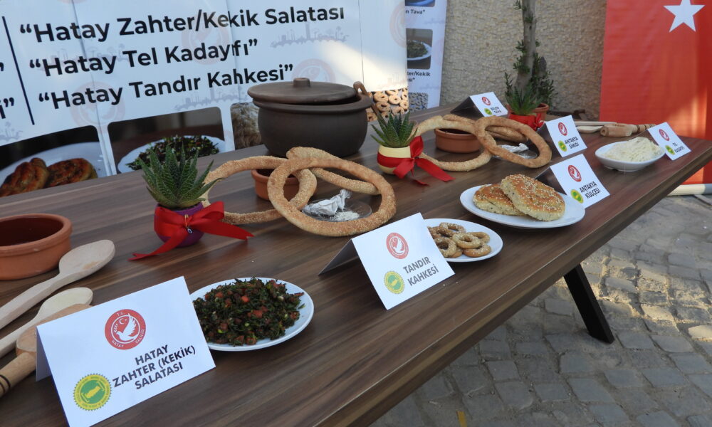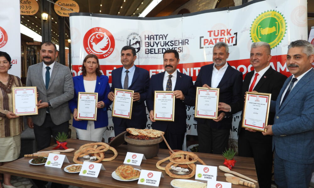 Hatay’ın yöresel lezzetleri Antakya simidi, Belen tava, Antakya külçesi, Zahter balatası, kekik salatası, tel kadayıfı ve tandır kahkesi coğrafi işaret tescil belgesi aldı. Antakya Gastronomi çarşısında düzenlenen tanıtım etkinliğine Vali Mustafa Masatlı, Belediye Başkanı Mehmet Öntürk ve protokol üyeleri katıldı. Coğrafi işaret tescil başvurusu yapılan yöresel lezzetler hakkında bilgi veren Vali Mustafa Masatlı, Hatayın sahip olduğu kültürel ve ekonomik değerlerin korunarak, gelecek nesillere aktarılması amacıyla çalışmaların sürdüğünü söyledi. Coğrafi işaret alan ürünlerin ulusal ve uluslararası pazarlarda rekabet gücünü artırdığını dile getiren Vali Masatlı, kente özgü daha önce 31 ürüne coğrafi işaret belgesi alındığını hatırlattı. Vali Masatlı, şöyle devam etti: