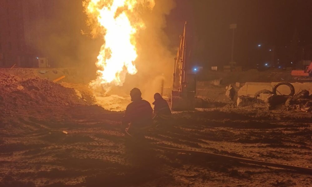 Hatay’da alt yapı çalışmasında hasar gören doğalgaz borusu alev aldı: 2 yaralı