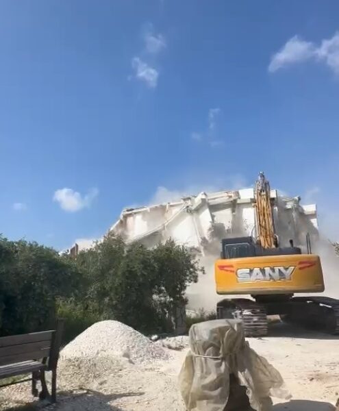 Kahramanmaraş merkezli 6 Şubat depremlerinde Defne ilçesi Subaşı Mahallesinde ağır hasar alan bina, iş makinesiyle kontrollü şekilde yıkıldı. 6 katlı bina, iş makinesinin darbesiyle yerle bir oldu. Yıkım anı, çevredeki bir kişi tarafından cep telefonuyla görüntülendi.