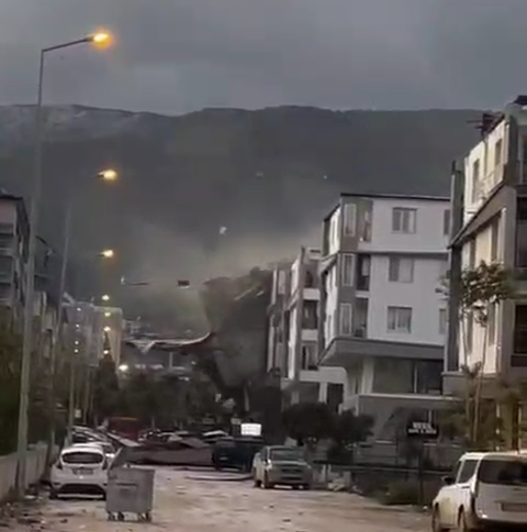 İlçedeki Serinyol Mahallesinde saat 17.00 sıralarında etkili olan sağanak ve fırtına nedeniyle bir apartmanın çatısından parçalar kopmaya başladı. Çevredekilerin ihbarıyla bölgeye sağlık, itfaiye ve polis ekipleri sevk edildi. Ekipler çevreyi güvenlik şeridiyle kapatarak önlem aldı. Kısa süre sonra çatının büyük bölümü fırtına nedeniyle uçarak çevredeki binalara çarptıktan sonra yola düştü. Alınan önlemler sayesinde ölen ya da yaralanan olmadı. Çatının uçma anı çevredeki bir vatandaş tarafından cep telefonuyla kaydedildi.