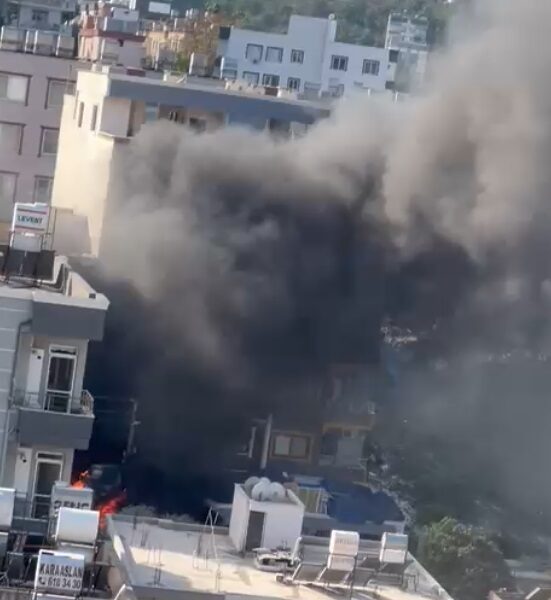 Hatay’da iş yerinde çıkan yangın, üst kattaki daireye sıçradı