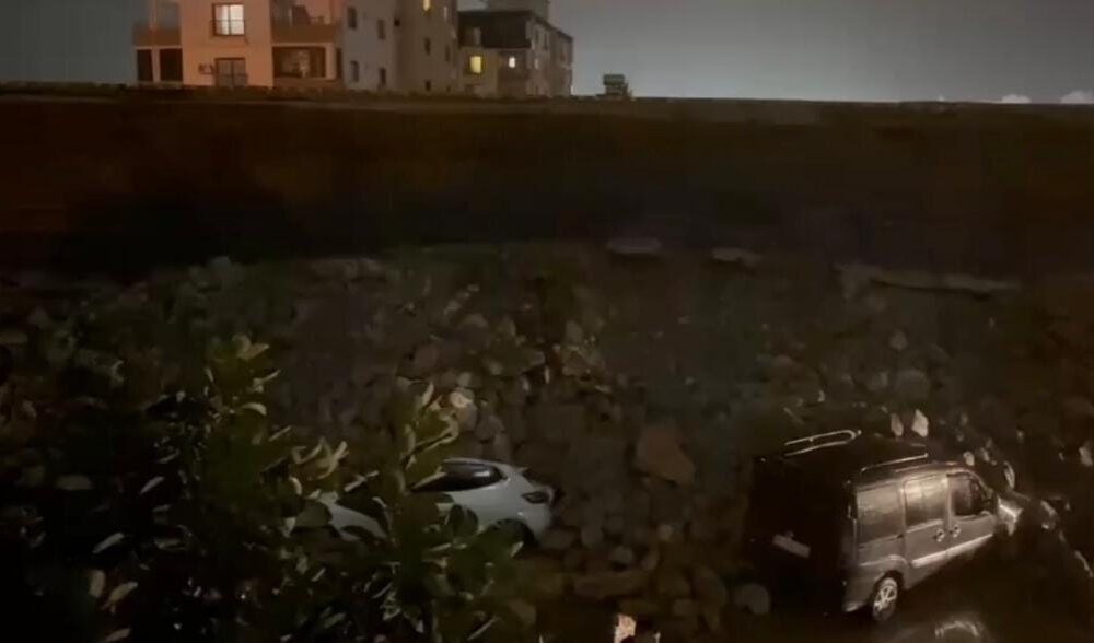 Hatay’da istinat duvarı park halindeki araçların üstüne devrildi