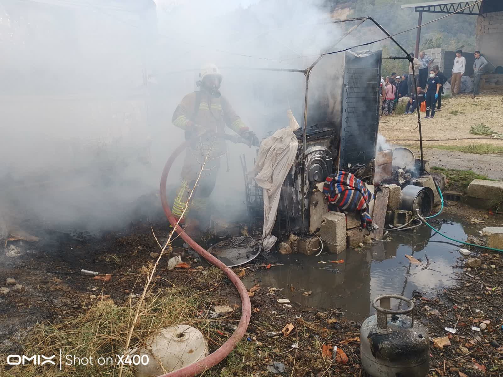 • Hatay’ın Yayladağı ilçesinde depremzede ailenin yaşadığı konteynerda çıkan yangında,dumandan ekilenen anne hastaneye kaldırılırken 1 yaşındaki bebeği olay yerinde yapılan tüm müdahalelere rağmen hayatını kaybetti.Fotoğraf:Hatay,(DHA)