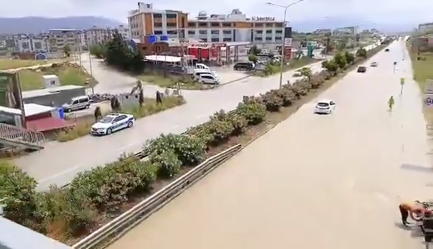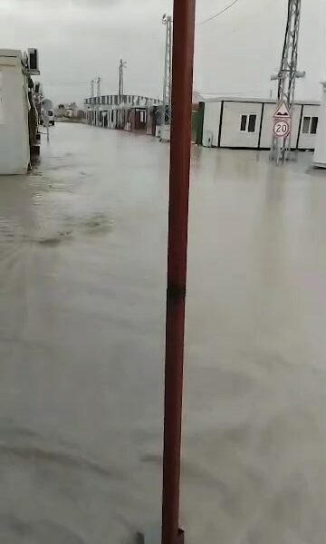 Hatay’da kuvvetli yağış; yollar göle döndü, konteynerleri su bastı
