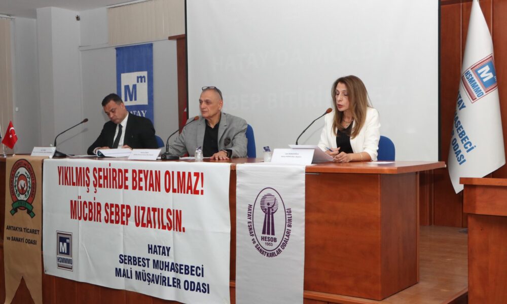 Antakya Ticaret ve Sanayi Odası Başkanı Hikmet Çinçin, Hatay Muhasebeciler ve Mali Müşavirler Odası Başkanı Jale Marufoğlu ve Hatay Esnaf ve Sanatkarları Odaları Birliği Başkanı Aziz Fatih Yılmaz’ın katılımıyla gerçekleştirilen ortak basın toplantısında mücbir sebep halinin kent ayağa kalkana kadar uzatılması istendi. Odalar adına açıklamayı okuyan Hikmet Çinçin, Hatay, Adıyaman, Kahramanmaraş ve Malatya illeri ile Gaziantepin İslahiye ve Nurdağı ilçelerindeki mükellefler için mücbir sebep hali süresinin 31 Ağustos günü sonu sona erdiğini hatırlattı.