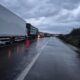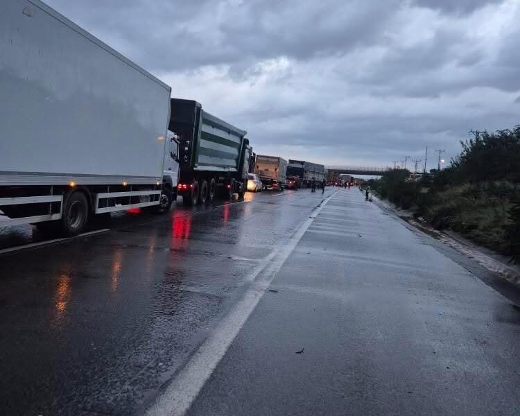 Toprakkale-İskenderun Otoyolu'nda oluşan heyelan nedeniyle yol çöktü. Uzun araç kuyrukları oluştu. Fotoğraf: Hatay,(DHA)