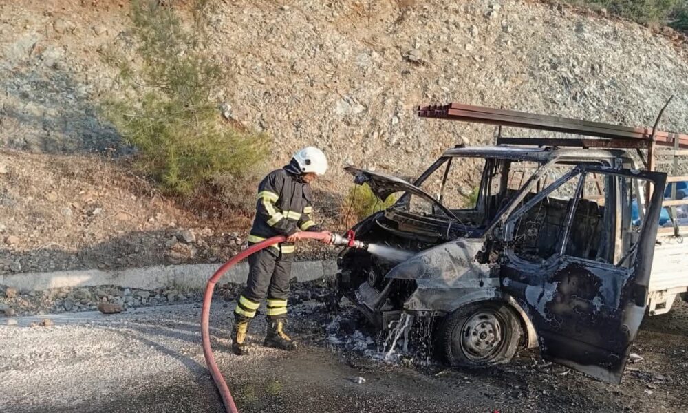Gündüz saatlerinde ilçeye bağlı Eğerci Mahallesi’nde seyir halindeki kamyonet, motor kısmından alev aldı. Araçtan alevlerin yükseldiğini fark eden sürücü, kamyoneti yolu sağına park ederek, durumu itfaiyeye bildirdi. Bölgeye sevk edilen itfaiye ekibi, kamyonetin motor kısmını saran alevlere tazyikli su sıkarak müdahale etti. İtfaiye erlerinde söndürülen yangında kamyonet, kullanılmaz hale geldi.