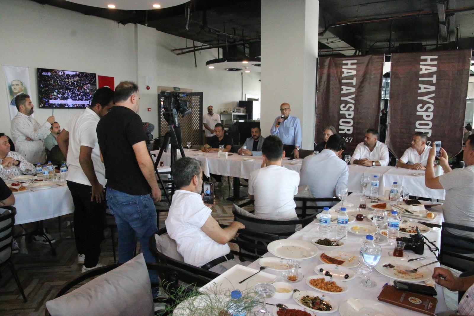 Hatayspor Kulübü Başkanı Levent Mıstıkoğlu, Antakya EXPOda düzenlediği basın toplantısında açıklamalarda bulundu. Hataysporun bireylerin değil, Hatay halkının takımı olduğuna vurgu yapan Mıstıkoğlu, destek çağrısı yaptı. Takımın ay başında Mersindeki tesise döneceğini ve ilk maçın 9 Temmuzda Galatasaray ile oynanacağını kaydeden Mıstıkoğlu, iyi bir sonuç almayı beklediklerini anlattı. Hataysporda takım ve huzur ruhu olduğunun altını çizen Mıstıkoğlu, “Kampa gittik, arkadaşlarla görüştük. Teknik heyetimize son derece güveniyoruz. Hatayspor taraftarlarının sürekli talebi oluyor. İşte Yıldız futbolcu alın. 10 numara alın, 5 numara alın gibi sosyal medyada birtakım talepler oluyor. Bu arkadaşlarımızdan rica ediyorum, istirham ediyorum. Biz teknik heyetimizin talep ettiği transferleri yapıyoruz. Hiçbirimiz teknik adam değiliz. Bunu yazan arkadaşlar da teknik adam değiller. Dolayısıyla bizim görevimiz teknik heyetin önünü açmak, onlara yardımcı olmak. Biz yönetim kurulu olarak teknik heyetimizin istediği tüm transferleri yapıyoruz ve yapmaya da devam edeceğiz. Bugüne kadar takımımız kampta 3 hazırlık maçı yaptı. İki hazırlık maçımız daha var. İki hazırlık maçımızın tamamlanmasından sonra takım Mersin’e dönecek” ifadelerini kullandı.