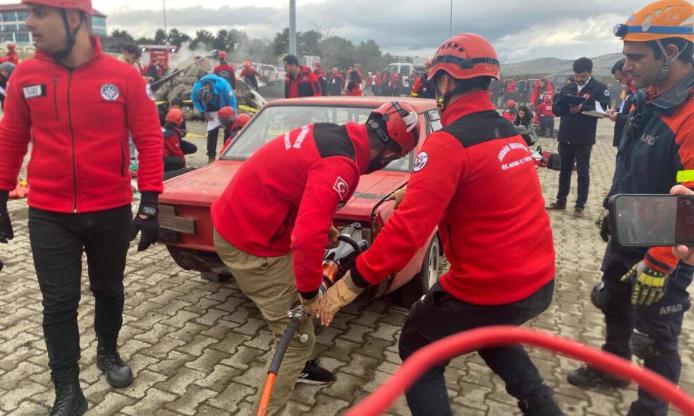 Ardahan Üniversitesi'nde hava saldırısı senaryosu ile düzenlenen ikinci afet yönetimi tatbikatı gerçeği aratmadı. Fotoğraf: Dinçer AKTEMUR / Ardahan,(DHA)