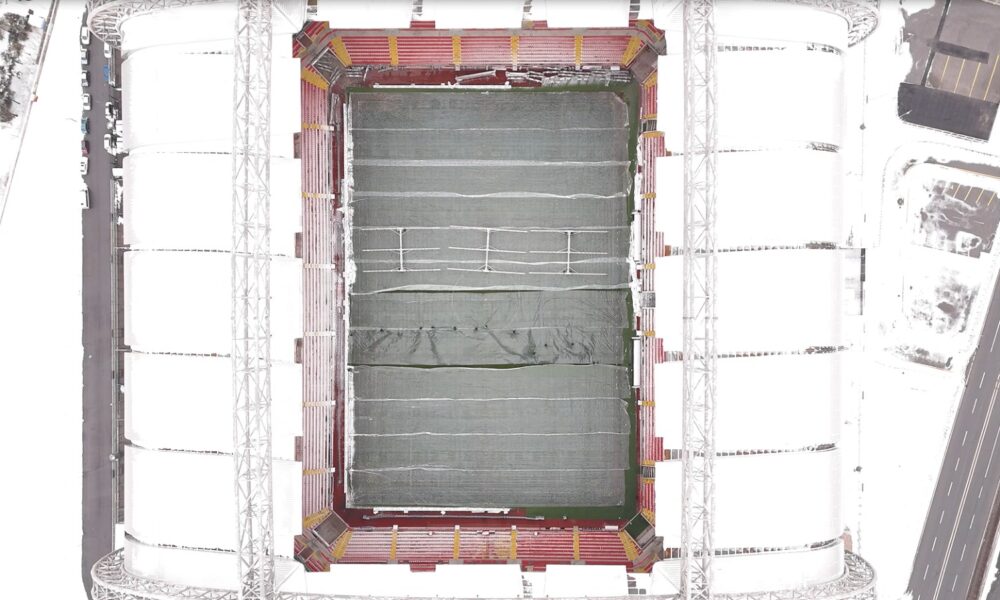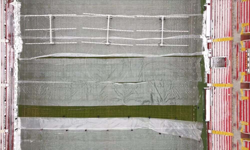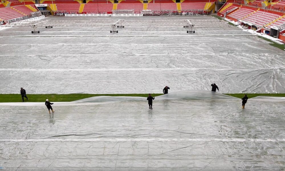 Hava sıcaklığı eksi 17 dereceyi gördü; Süper Lig ekibinin stadyumunun zeminine naylon örtü serildi / Ek fotoğraflar