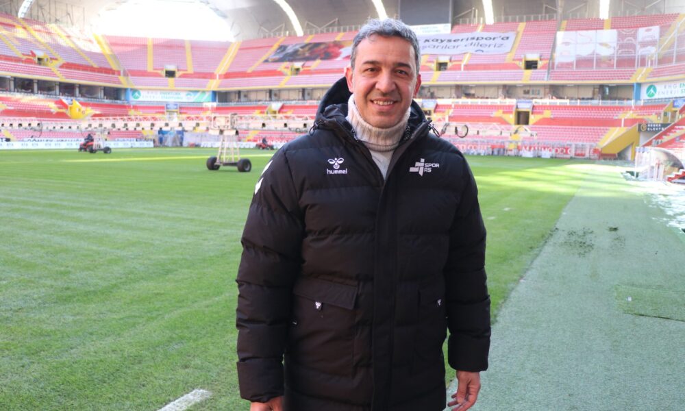 Kayserispor’un maçlarına ev sahipliği yapan RHG Enertürk Enerji Stadyumu’nun zemini, kentte hava sıcaklıklarının eksi 17 derecelere kadar düşmesinin ardından, özel naylon örtü ile kaplandı. Ali Yılmaz (Fotoda)Fotoğraf: Samed Aydın SUN/Kayseri, (DHA)