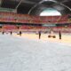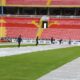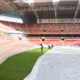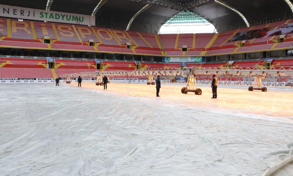 Stadyum müdürü Ali Yılmaz, “Kış sezonunda zeminin rutin korumaları yapılıyor. Yapay çim güçlendirme araçları, yapay ışıklandırma vererek çimlerin güçlendirilmesini sağlıyoruz. Bunu zaten kış boyunca sahada gezdirerek yapıyoruz. Kar yağışının ardından olağanüstü bir soğuk vardı. Hava sıcaklıkları eksi 17, 18 hatta 20’lere kadar düştü. Burada bu sistem yeterli olmuyor. Ekstradan koruyucu bir örtü sermemiz gerekti. Hava alabilen bir örtü ile bir de naylon örtülerimiz var. Biz hava çok soğuk olduğu için naylon örtüleri tercih ettik. 2-3 gün zeminin üzerini naylonla kapattık. 2-3 günde bir de örtüyü kaldırıp, havalandırma yaptık. Bu şekilde çimin sağlıklı kalmasını sağladık” dedi.
