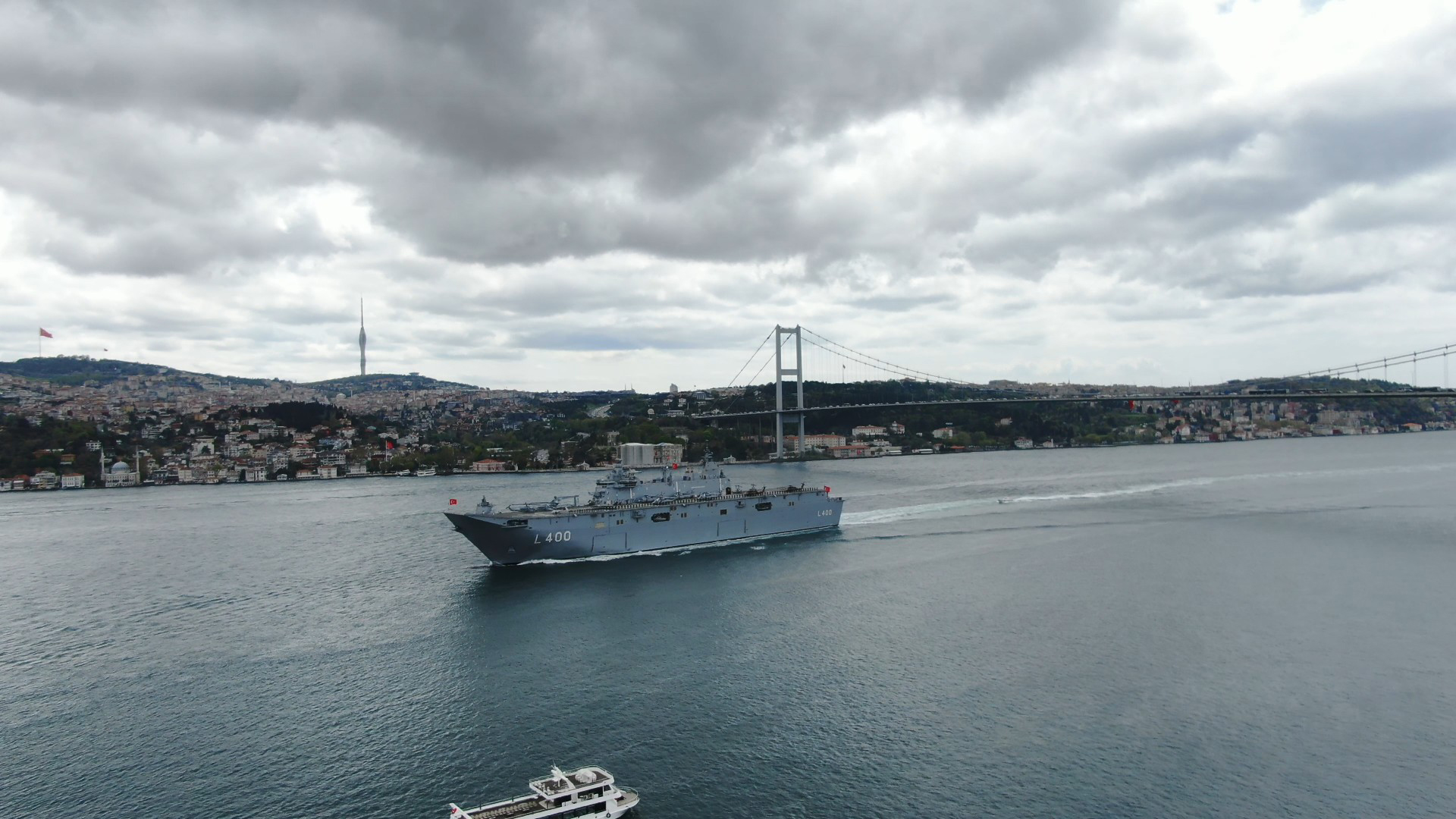 (Havadan fotoğraflar) TCG Anadolu Cumhurbaşkanı Erdoğan’ı selamladı