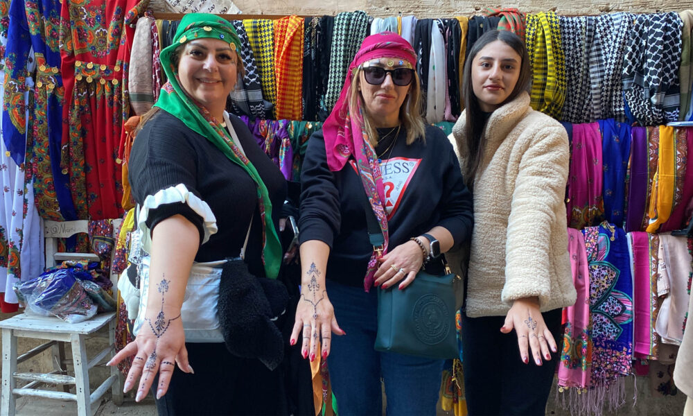 İlçeye gelen turistlerin ellerine kına ile bin yıllık geçmişi bulunan Süryani taş işleme motiflerini çizen ressam Uğur Ertek, “Midyat, yılın her ayı çok güzel. Kışın da güzel oluyor. Sonbaharın etkisi ile biraz da kışa doğru yaklaştık, hava biraz daha ılıman; çok çok soğuk değil. Çok güzel bir şekilde gezilip, görülebilir Midyat. İnsanlar buraya geliyorlar, bizi bulmaya çalışıyorlar. Bizi buldukları zaman, onlara dek, kına yapıyoruz. Mardinin bin yıllık kültürünü elimizden geldiği kadarıyla bu sokakta hala devam ettirmeye çalışıyoruz. Gönlümüzün sevgisiyle, aşkla onlara motifleri inceliyoruz ve yapıyoruz. Süryani kardeşlerimizin taşa yaptığı motifleri ellerine kına yardımıyla, o sanatı işliyoruz. Herkesi Midyata bekliyoruz” diye konuştu.