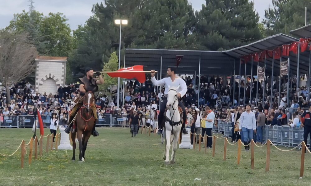Vali Işın, adına türbe yapılan ilk Türk kadınının Hayme Ana olduğunu ifade ederek, “Hayme Ana, Osmanlı Devletinin kuruluşundaki emeği, alın teri ve duasıyla sadece bir obanın değil yıllar sürecek bir imparatorluğun kutlu anası ve Türk kadınının simgesidir. Hayme Ana tarih sahnelerinde hep konuşuldu canlandırıldı. Nesilden nesile bugüne kadar aktarıldı. Hayme Ana sadece bir anne değil, aynı zamanda bir lider, imparatorluğa dönüşen bir devletin kurucusu, çok muhterem bir kadındır. Kendisini rahmetle anıyoruz. Geçmişi kahramanlıklarla dolu muhteşem bir milletin ferdiyiz. Biz 100 yıla sığacak kadar küçük bir tarihe sahip değiliz. Biz bin yıldan fazladır bu topraklarda yaşayan muhteşem tarihe sahibiz” dedi. Daha sonra şenlik alanında devam eden ve bu yıl 744’üncü düzenlenen Hayme Anayı Anma ve Göç Şenliklerinde, mehter takımı, geleneksel okçuluk, atlı gösteri ve halk oyunları gösteri yapıldı. Kuruluş Osman dizisinin sevilen oyuncularından Gonca Hatun rolüyle Belgin Şimşek, Alaeddin Bey rolüyle Faruk Aran, Boran Bey rolüyle Yiğit Uçan ve Aykut Alp rolüyle Murat Boncuk, şenlik alanında katılımcılarla buluştu.