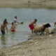 • Batman'da besiciler, hayvanlarını sıcaktan korumak için Kırkat Göleti'ne getirip, yıkıyor. Hayvanlar suda serinlerken, besiciler ile çocuklarının hayvanlar ile ilgilendikleri anlar güzel görüntüler oluşturdu. (Fotoğrafta, besici Davut Bıçakçı) Fotoğraf: G