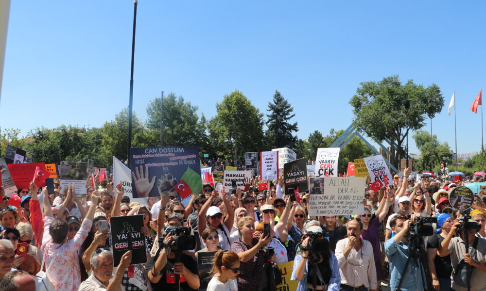 Yurdun dört bir yanından Ankaraya gelen hayvanseverler, Hayvanları Koruma Kanununda Değişiklik Yapılmasına Dair Kanun Teklifine karşı çıkmak için Çankaya ilçesi Anıtparkta bir araya geldi. Yaklaşık bin kişinin yer aldığı alanda, hayvanseverlerin beraberinde getirdiği evcil hayvanları da yer aldı. Polis ekipleri, Anıtpark ve çevresinde geniş güvenlik önlemleri aldı. Alana girişler X-Ray taraması ile üst ve çanta aramaları sonrası gerçekleştirildi. Katliama dur de, Yasa değil katliam, Tüm mahkumların masum olduğu tek hapishane barınaklardır ve Sokağım köpeklerle güvenli gibi pankart ile dövizlerin bulunduğu alanda, hayvanseverler, “Yasayı çek”, “Barınaklarınız kan kokuyor”, “Susmuyoruz, korkmuyoruz” ve “Devlet öldürmez, devlet yaşatır” gibi sloganlar atıldı.