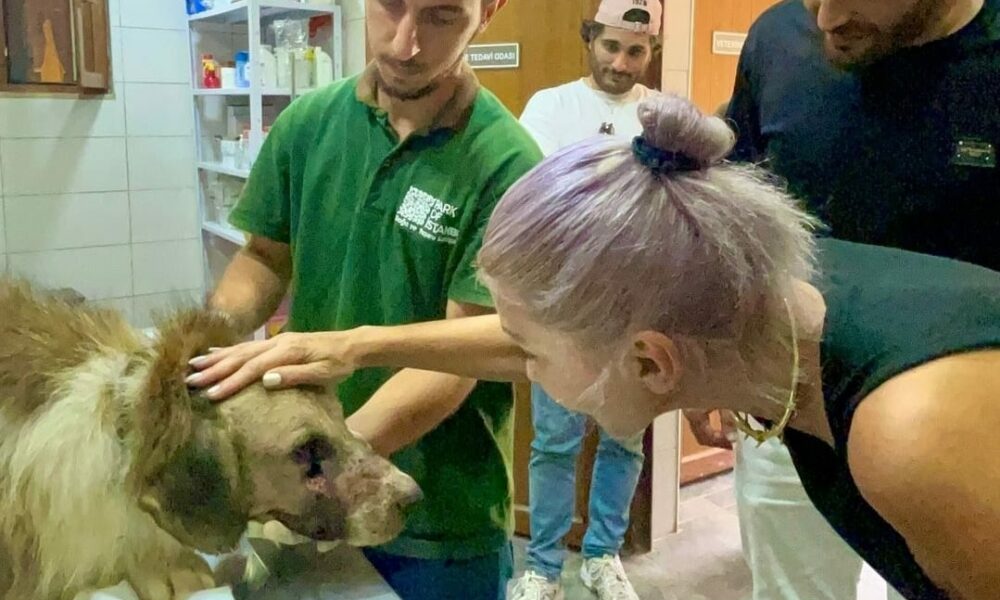 ‘Hedef tahtası’ gibi kullanılan sokak köpeğine Hande Yener’den ziyaret