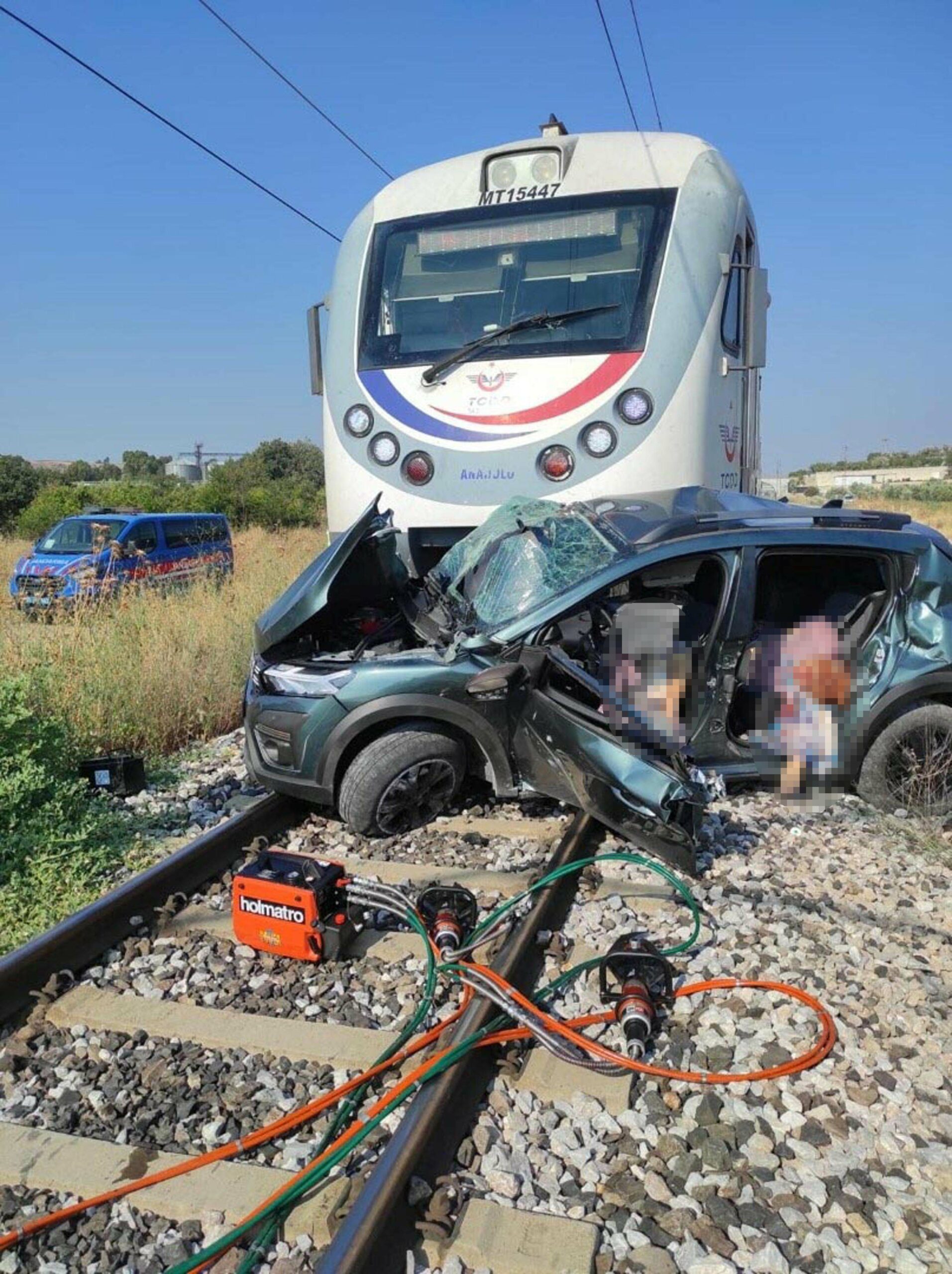 Hemzemin geçitte yolcu treni otomobile çarptı, aynı aileden 3 kişi öldü