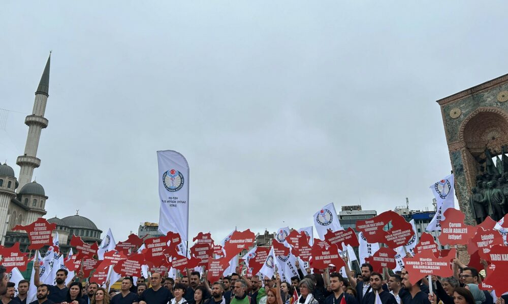 Şimşek, “Ne yazık ki sağlık emekçileri yoksulluğa, adaletsizliğe, liyakatsizliğe hapsolmuş durumda. Buna karşı topyekün toplumca harekete geçmenin tam zamanı. Ayrıca işçilerin bugün bayramı ve meydanların kapatılması, sınırlandırılması doğru bir davranış değil. Anayasamıza aykırı. Bırakalım işçiler bayram gününde meydanlarda bayramlarını yapabilsin” diye konuştu.