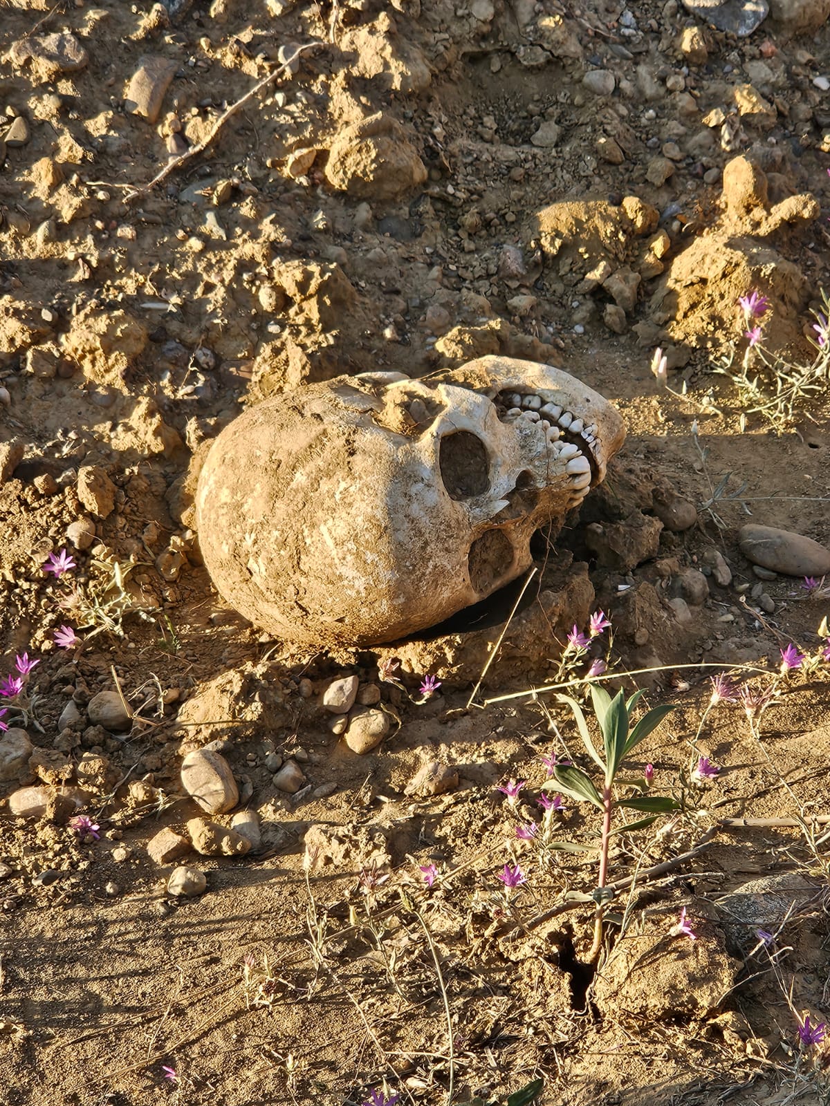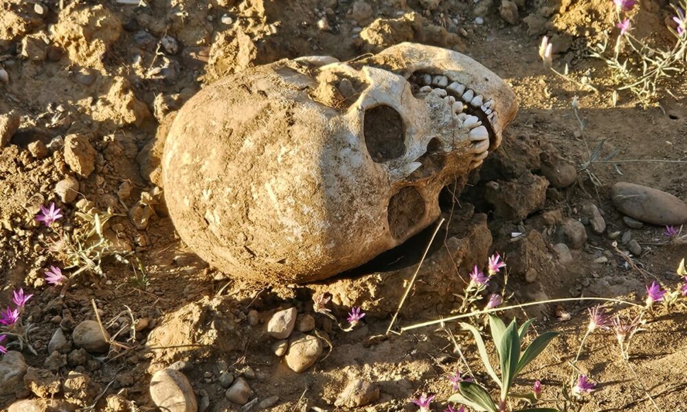 Heyelan sonrası 200 yıllık olduğu tahmin edilen insan kafatası ile kemikler bulundu