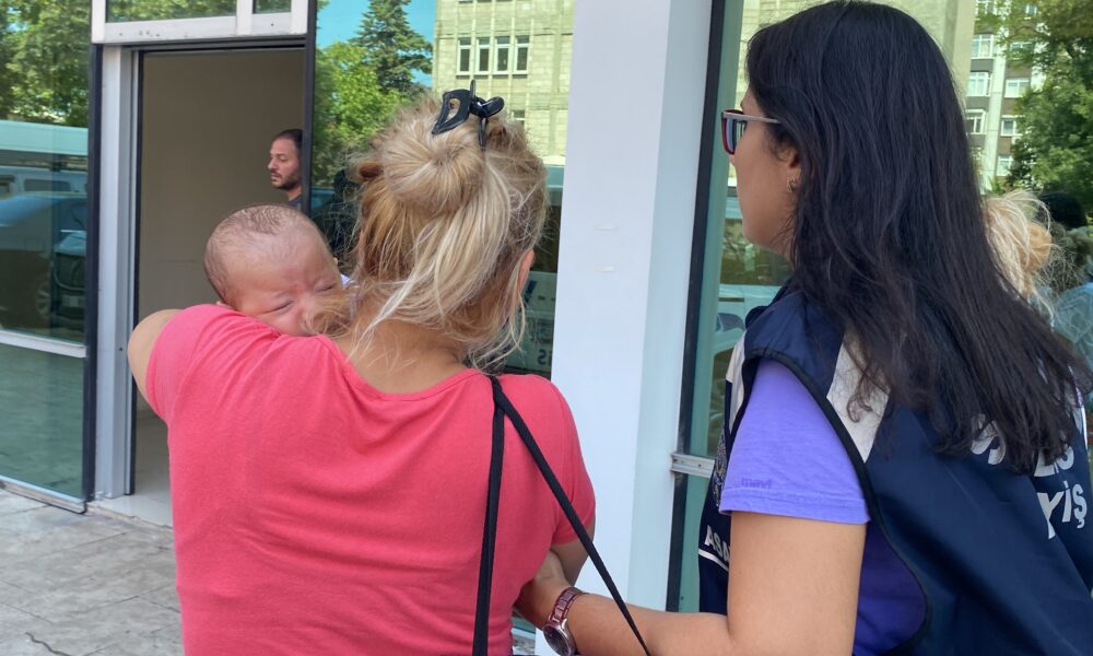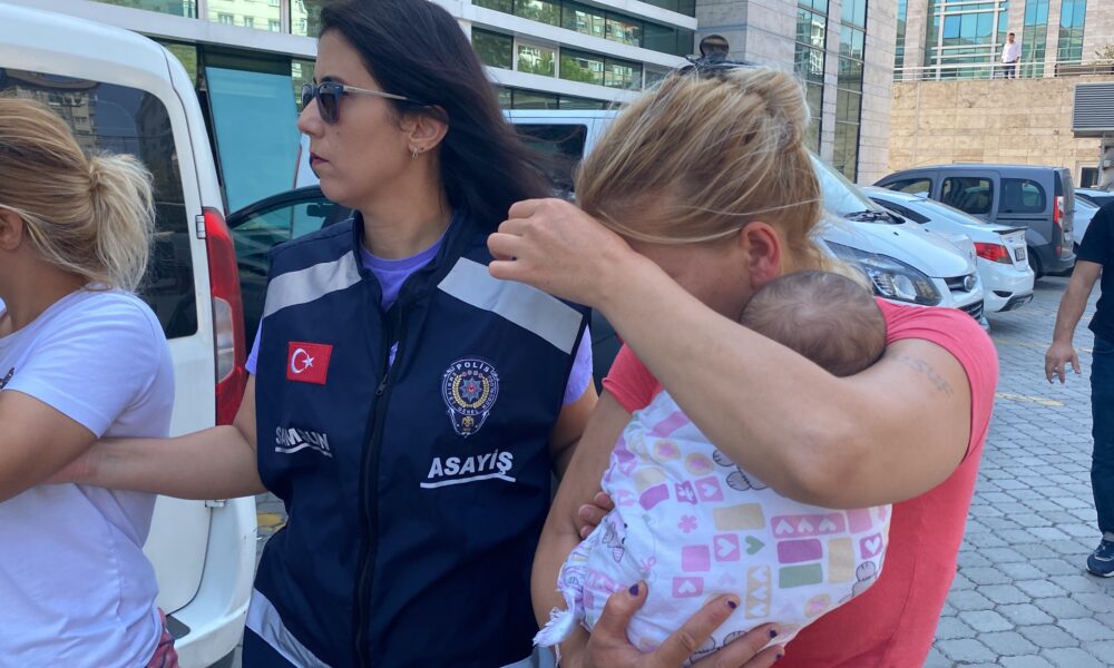Emniyetteki işlemlerinin ardından 2 şüpheli, adliyeye sevk edildi. Şüphelilerden S.Y., adliyeye 2 aylık bebeğiyle gitti.
