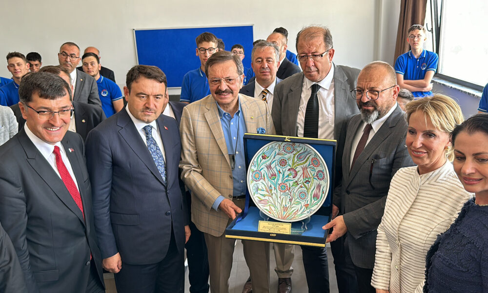 TOBB Başkanı Rifat Hisarcıklıoğlu, çeşitli ziyaretlerde bulunmak üzere Kütahya’ya geldi. Kütahya Organize Sanayi Bölgesi’ndeki TOBB Kütahya OSB Mesleki ve Teknik Anadolu Lisesi’nde açılış programına katılan Hisarcıklıoğlu, öğrencilerle sohbet ederek okul sırasına oturdu. Ardından okulun resmi açılışını gerçekleştirdi. Kütahya Valisi Musa Işın ve Kütahya Belediye Başkanı Eyüp Kahveci’yi makamlarında ziyaret eden Hisarcıklıoğlu, Kütahya Ticaret Borsası yeni hizmet binasına geçti. Burada düzenlenen açılış programına Hisarcıklıoğlu’nun yanı sıra Kütahya Valisi Musa Işın, AK Parti Kütahya Milletvekili İsmail Çağlar Bayırcı, Kütahya Belediye Başkanı Eyüp Kahveci, Kütahya Ticaret ve Sanayi Odası Başkanı Esin Güral Argat, Kütahya Ticaret Borsası Başkanı Necati Gültekin, oda başkanları ve kurum müdürleri katıldı.