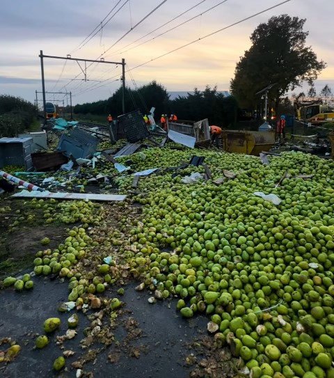 Hollanda’nın Gelderland kentindeki Meteren köyünde, hemzemin geçitten geçerken mahsur kalan armut yüklü TIR’a, yolcu treni çarptı. Önceki gün meydana gelen kazada, 5 kişinin yaralandığı bildirildi.