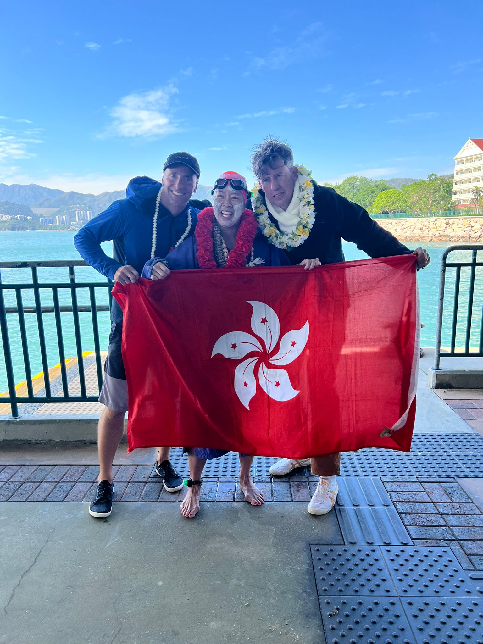 Simon Holliday, Edie Hu ve Brett Kruse’dan oluşan üç yüzücü, Hong Kong’un en büyük adası Lantau’nun etrafında 65 kilometrelik rotayı tamamlamak için maceraya başladı. Sporculara, yanlarında bulunan üç kano ve bir yattan oluşan küçük bir filo destek verdi. Destek ekipleri, belirlenen kurallar çerçevesinde, her 45 dakikada bir spor jelleri, muzlar ve ağrı kesiciler içeren özel yiyecek paketlerini yüzücülere ulaştırdı.