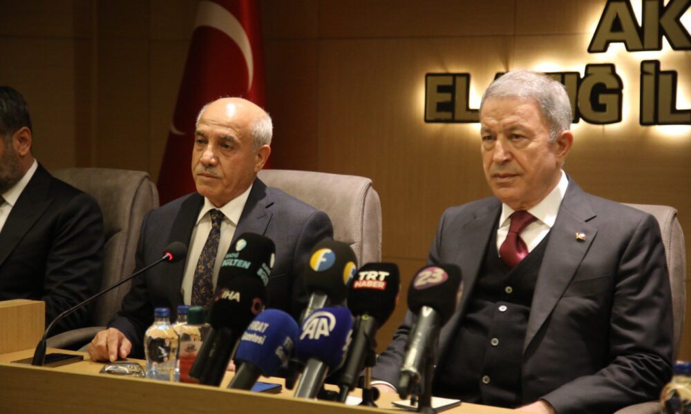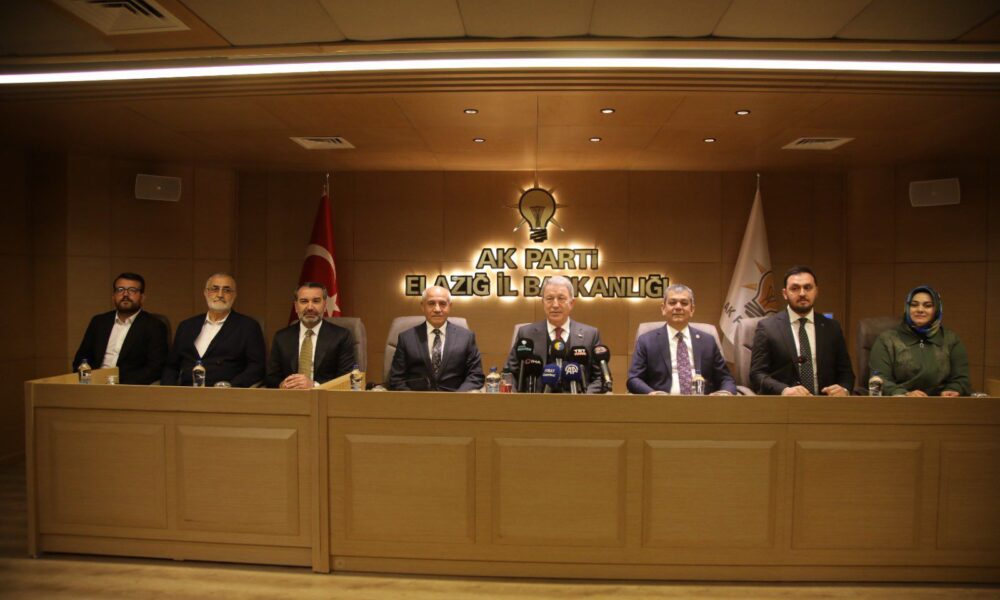 TBMM Milli Savunma Komisyonu Başkanı Hulusi Akar, bir dizi ziyaret kapsamında geldiği Elazığ’da, AK Parti İl Başkanlığını ziyaret etti. Akar’a ziyaretinde Milletvekili Erol Keleş ve Elazığ Belediye Başkanı Şahin Şerifoğulları da eşlik etti. Burada açıklama yapan Akar, “Sayın Cumhurbaşkanımızın liderliğinde tarihi şanla ve şerefle dolu Türkiye Cumhuriyeti Devleti büyük atılımlar yaptı, yapmaya devam ediyor. Bunun sonucunda büyük ve güçlü Türkiyenin inşası için, terörsüz Türkiyenin gerçekleştirilmesi için bu Türkiye Yüzyılında elimizden gelen ne ise onu yaptık, yapacağız. Bizim 2500 yıllık bir tarihimiz var, bir geçmişimiz var. Bu tarih bizim için şanlı bir tarih. Bu tarihte herkesin yeri var. Dolayısıyla biz 86 milyonluk bir millet olarak görüyoruz. Bir bayrak altında, bir millet olarak görüyoruz. Dolayısıyla bu milli birlik ve beraberliğimizi en üst düzeyde gerçekleştirmek suretiyle sağa sola bakmadan ilerleyeceğiz ve gerçekten layık olduğu şekliyle ülkemizi layık olduğu seviyeye getirmeye gayret göstereceğiz ve getireceğiz inşallah. Asil milletimizin yani sizlerin sevgisi, güveni ve duası olduğu müddetçe bizim Türkiye Cumhuriyeti Devletinin çalışanlarının hiçbir aşamayı aşamayacağı hiçbir engel yok. Yapamayacağı hiçbir görev yok. Allahın izniyle bunların hepsini bugüne kadar başardık. Bunu da başaracağız. Bu terörsüz Türkiye konusunda hepimizin hassas olması lazım. Hepimizin katkı sağlaması lazım. Hepimizin dikkatli olması lazım. Bu terörsüz Türkiyenin amacı açık ve net belli. Bizim enerjimizi, bizim insanımızı, gençlerimizi korumak, kollamak. Paramızı, pulumuzu çarçur etmemek, işimize gücümüze bakmak. Bu konuda yapılması gereken ne varsa, bu mali külfet dahil bundan kurtulup ülkemizin kalkınmasına yönelmemiz lazım. Bunun için de bugüne kadar Türk Silahlı Kuvvetleri, Jandarmamız, emniyet teşkilatımız ve kurucularımız omuz omuza terörle mücadele ettiler ve bugünlere gelindi. Bizim dileğimiz, temennimiz bir an önce bu fesih kararının uygulanması, silahların bırakılması ve buna bağlı olarak da bütün vatandaşımızın 86 milyon vatandaşımızın çok daha güvenli bir şekilde, çok daha müreffeh bir şekilde hayatını sürdürmesi” dedi.