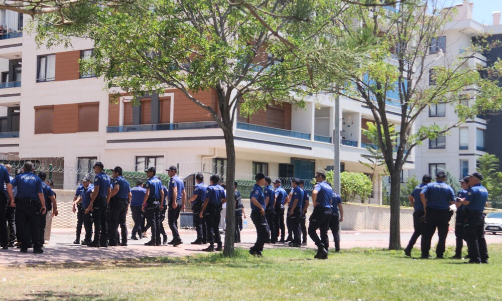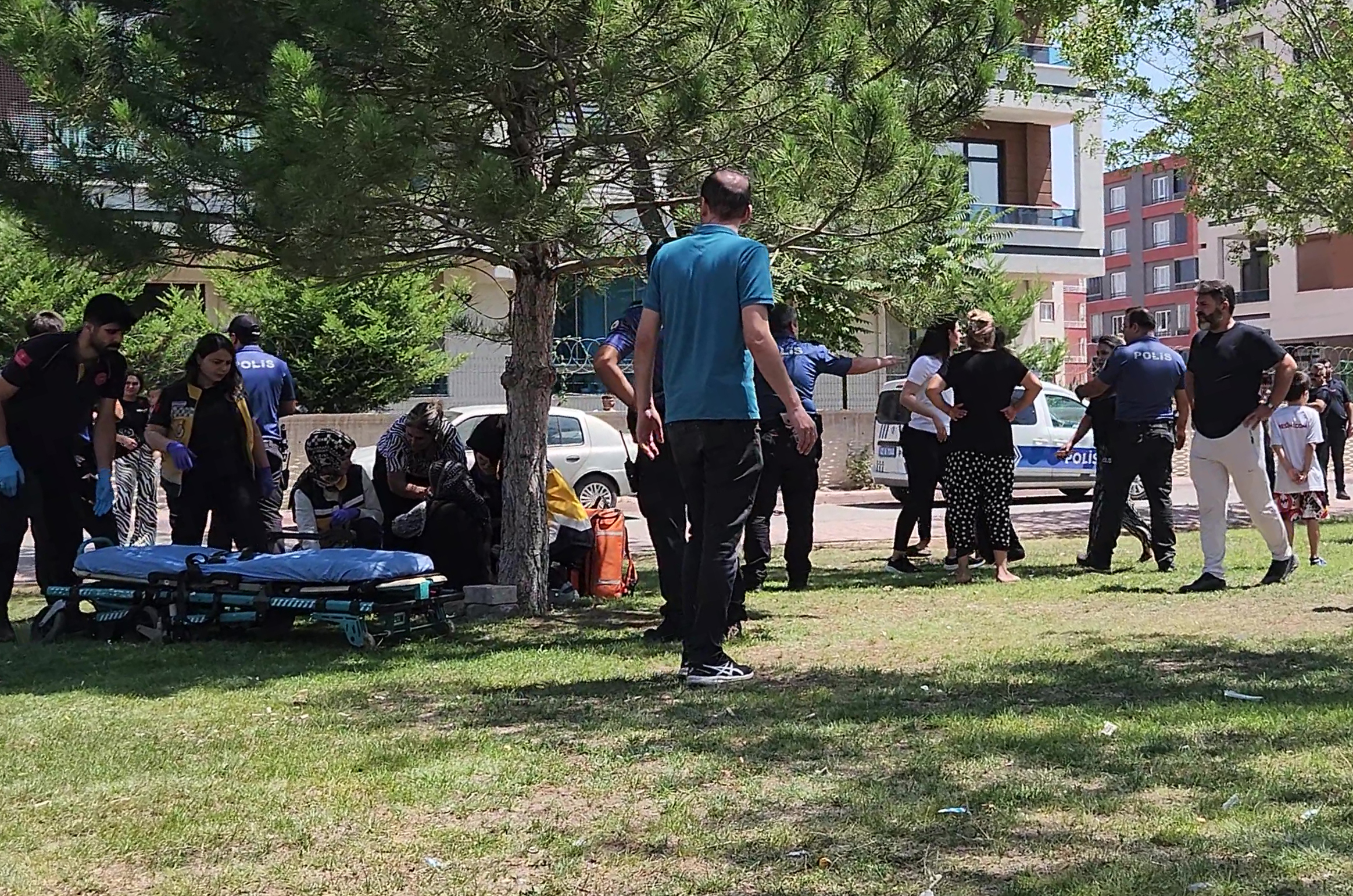 • Konya'da Orhan K., aralarında husumet bulunan kuzeni Kadir Kaya’nın evinin önündeki akrabalarına tabancayla ateş açtı. Açılan ateşte Esengül Kayacı (ağacın yanında) ile Narin Gülkaya yaralandı. Şüpheli Orhan K., polis tarafından yakalandı. Fotoğraf: Hasan