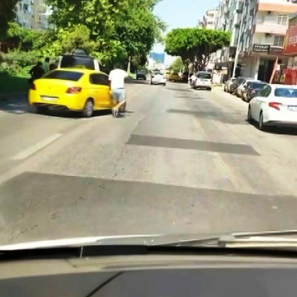 Olay, öğle saatlerinde Muratpaşa ilçesine bağlı 100. Yıl Bulvarı üzerinde meydana geldi. Duraktan müşteri alan Erman isimli taksi şoförünün önü, plakası öğrenilemeyen beyaz renkli bir minibüs tarafından kesildi. Minibüsteki 4 kişi, taksideki yolcuyu indirmeye çalıştı. Olayın ardından taksiden inen şoför, müşterisini indirmek isteyen kişilere müdahale etmek istedi. Taksideki ismi öğrenilemeyen yolcuyu indiremeyen 4 kişi, bu kez taksiye vurmaya başladı. Taksi şoförü aracına zarar veren ve yolcusunu indirmeye çalışan kişilere engel olmaya çalışırken, taksinin hareket ettiğini gördü. Takside bulunan yolcu, çalışır durumdaki taksinin şoför koltuğuna geçerek olay yerinden uzaklaştı. Taksi sürücüsü ise taksisinin arkasından koştu. O anlar vatandaşların cep telefonu kameralarına yansıdı.