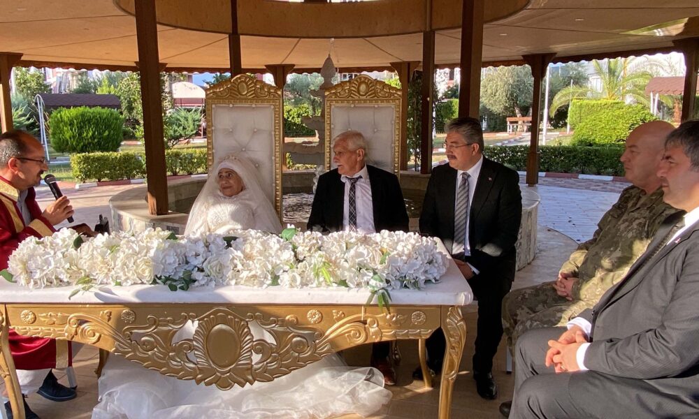 Huzurevinde tanışıp evlenmeye karar veren Hatice Sağır ile Celil Kurtun nikah töreni, dün gerçekleştirildi. Huzurevinin bahçesinde yapılan törende gelinlik giyen Hatice Sağır ile Celik Kurtun nikah şahitliklerini ise Osmaniye Valisi Erdinç Yılmaz, 12nci Komando Tugay ve Garnizon Komutan Vekili Albay Hakan Kocabaş ile Aile ve Sosyal Hizmetler İl Müdürü Tolga Nacar yaptı. Gelinin damadın ayağına da bastığı nikahta çift, nikah defterini alkışlar eşliğinde imzaladı.