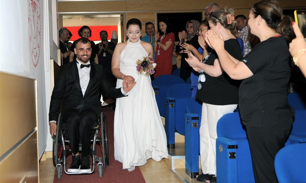 Eşi ile tanışma sürecini de anlatan gazi Karakuş, “Ben askere gitmeden önce o liseye gidiyordu, birbirimize aşık olduk. Seviyorduk da ben askere gittim, geldim. Sonrasında uzmanlığa başladım. Her sevgili gibi küstük, barıştık ama sonrasında sevgimize sahip çıktık. Yaralandıktan sonraki tüm sürecimde hep yanımdaydı. En büyük şansım zaten eşim, ailem, çevrem. Ben o yüzden çok mutluyum. Bu hastanede tekrar doğdum ben. Eşimle konuştuk, bu hastanede nikahımızı yaptık, hayatımızı birleştirdik” diye konuştu.
