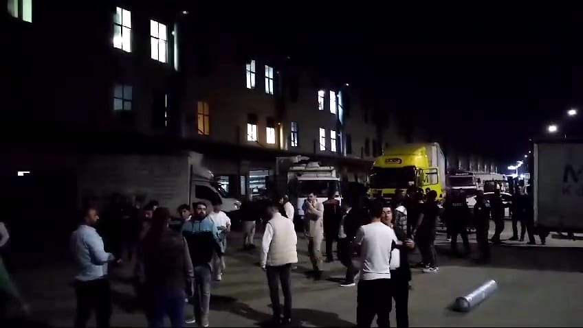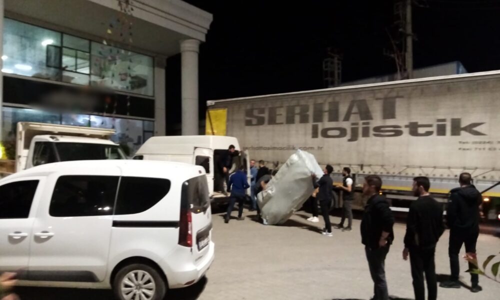 İflas eden mobilya firmasının önüne TIR’larla gelen alacaklılar, eşyaları yağmalamaya çalıştı
