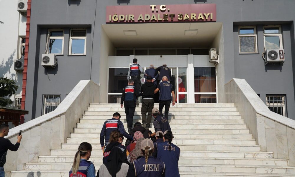 Dilucu Kara Hudut Kapısında görevli 13 polisin şehit edilmesi olayının faillerinden olan ve sarı kategoride aranan PKK/KCK Terör örgütünün sözde bölge sorumlusu H.D. Şırnak’ta yakalanarak Iğdır’a getirildi. H.D.’nin verdiği ifade doğrultusunda polisleri şehit eden patlayıcının yapımında kullanılan gübreyi temin ettiği tespit edilen DEM Parti İl Başkanı Mehmet Selçuk’un da aralarında bulunduğu 8 kişi yakalanarak gözaltına alındı. Iğdır Emniyet Müdürlüğünde işlemleri tamamlanan 8 şüpheli adliyeye çıkarıldı.