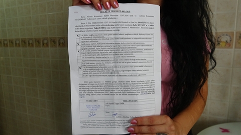 Zafer K. ile ilgili elinde 3 aylık uzaklaştırma kararı olduğunu da belirten Tuğçe E., “1,5 yıl önce, şiddetli geçimsizlik nedeniyle ve madde bağımlısı olduğu için ayrıldık. Çocuklarımı alıp ailemin yanına döndüm. Evliyken şiddet de uygulamıştı. Ama o zamanlar çocuğum küçük diye şikayetçi olmamıştım. Sela okunmasının ardından polis merkezine gittim, orada tutanak tutuldu. Aile İçi Şiddet Büro Amirliğine yönlendirdiler, orada ifademi vererek şikayetçi oldum. Elimde 3 aylık uzaklaştırma kararım da mevcut. Sürekli hakaret ve ölüm tehditleri nedeniyle aldırdım” dedi.