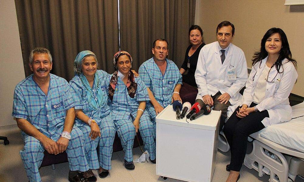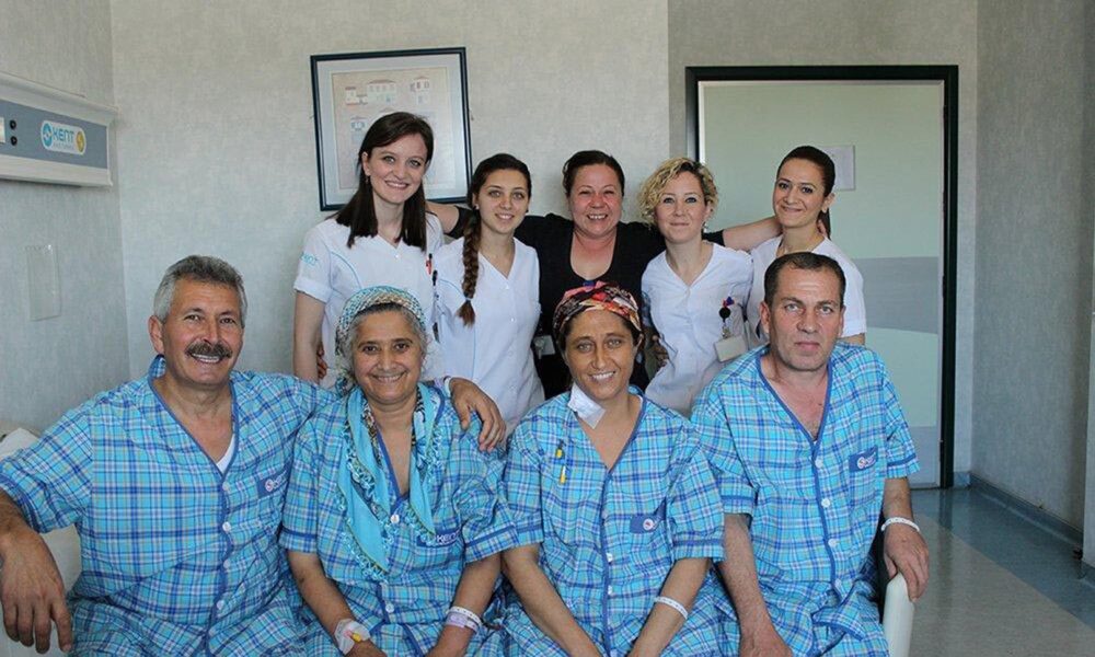 • IZMIR'DE 10 YIL ONCE DIYALIZE GIRDIKLERI ICIN NAKIL SIRASI BEKLEYEN SALISE YUCEL (53) VE ZEYNEP AKINSU (58), ESLERINDEN ALINAN BOBREKLER VE CAPRAZ NAKILLE HAYAT BULDULAR. SAGLIKLARINA KAVUSAN YUCEL VE AKINSU, HEM IKINCI HAYATLARINDA 10'UNCU YILLARINI HEM DE 14 MART TIP BAYRAMI'NI KUTLAMAK ICIN ACIBADEM KENT HASTANESI'NDE NAKILLERINI GERCEKLESTIREN DOKTORLARINI ZIYARET ETTI. (ON SIRA SOLDAN SAGA) MEMHET AKINSU, ZEYNEP AKINSU, SALISE YUCEL, MULAYIM YUCEL. (ARKA SIRA SOLDAN SAGA), ISIK OZGU, BOBREK NAKLI KOORDINATOR HEMSIRESI HAVVA KARA, DOC.DR. EBRU SEVINC OK. (FOTO: IZMIR DHA) (ARSIV)