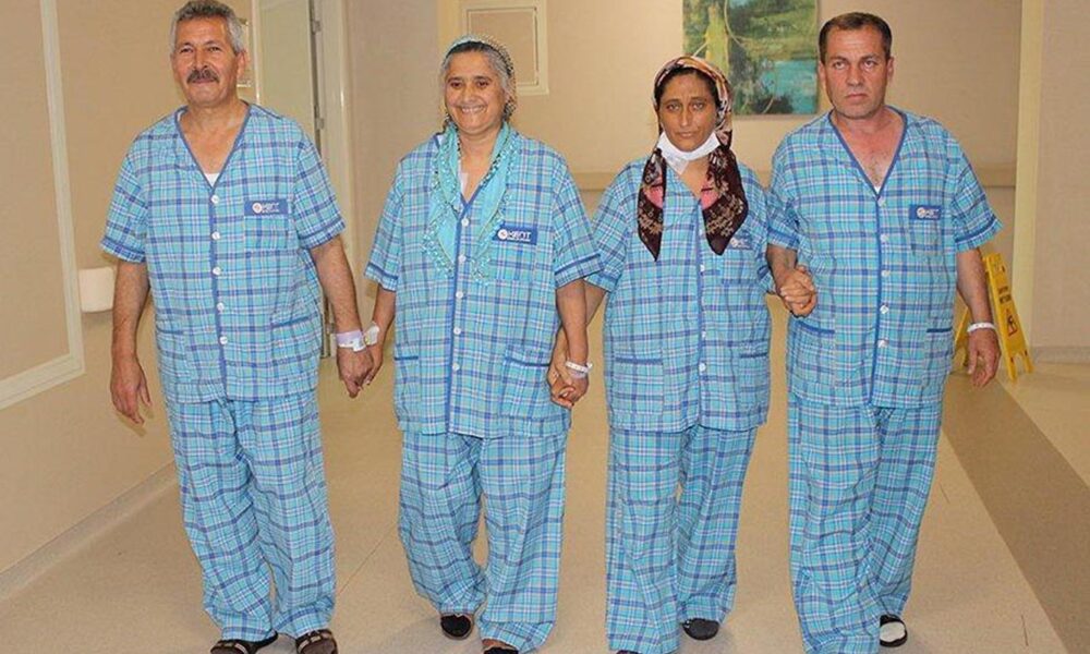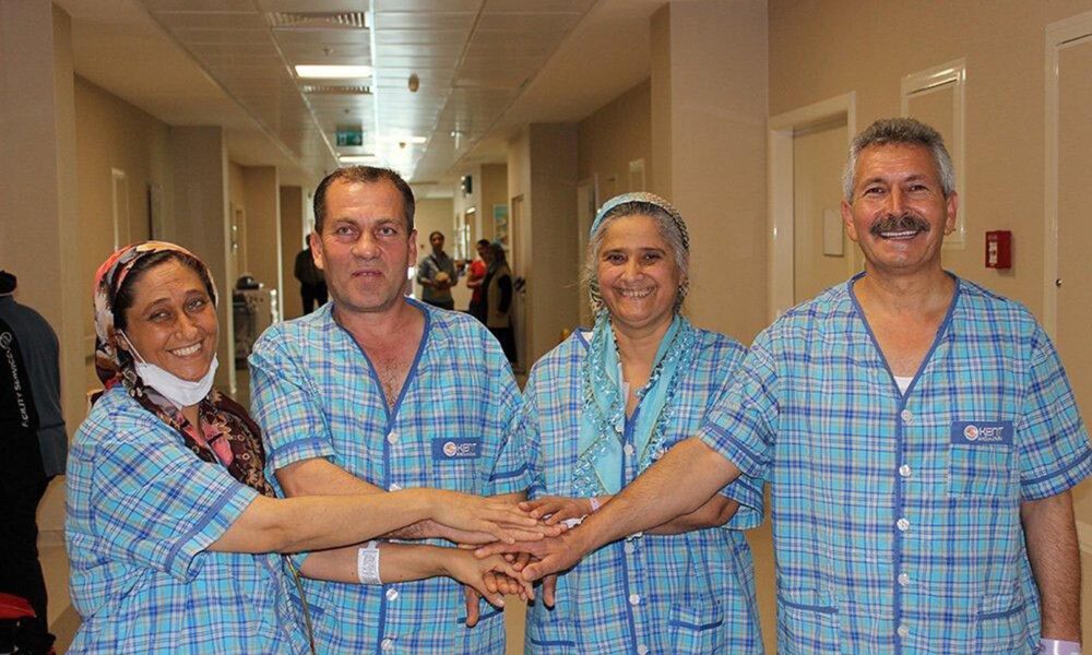 • IZMIR'DE 10 YIL ONCE DIYALIZE GIRDIKLERI ICIN NAKIL SIRASI BEKLEYEN SALISE YUCEL (53) VE ZEYNEP AKINSU (58), ESLERINDEN ALINAN BOBREKLER VE CAPRAZ NAKILLE HAYAT BULDULAR. SAGLIKLARINA KAVUSAN YUCEL VE AKINSU, HEM IKINCI HAYATLARINDA 10'UNCU YILLARINI HEM DE 14 MART TIP BAYRAMI'NI KUTLAMAK ICIN ACIBADEM KENT HASTANESI'NDE NAKILLERINI GERCEKLESTIREN DOKTORLARINI ZIYARET ETTI. (SOLDAN SAGA) SALISE YUCEL, MULAYIM YUCEL, ZEYNEP AKINSU, MEHMET AKINSU. (FOTO: IZMIR DHA) (ARSIV)