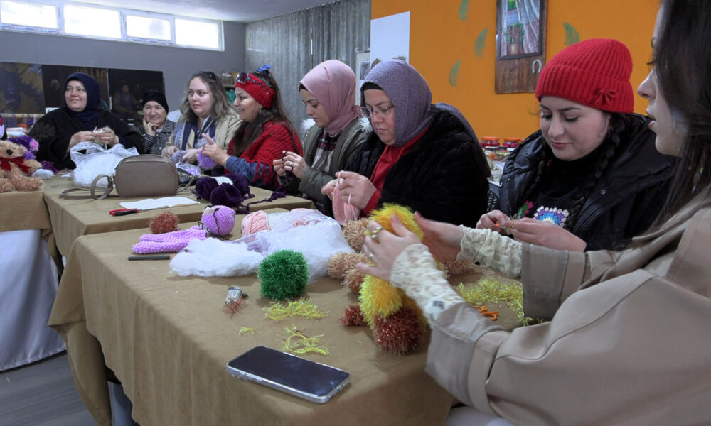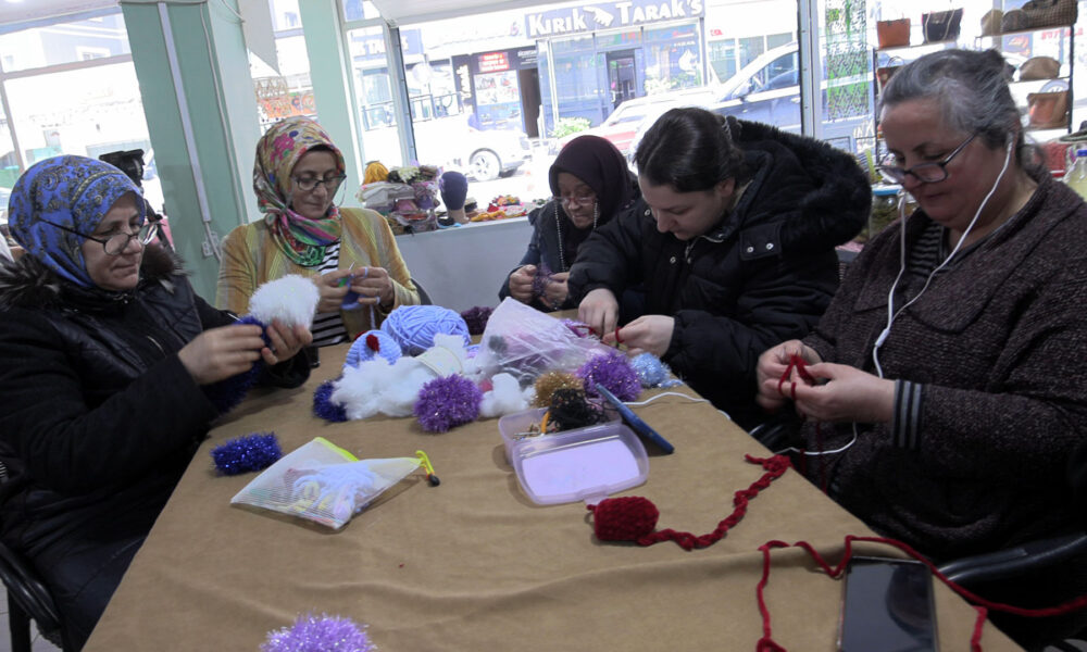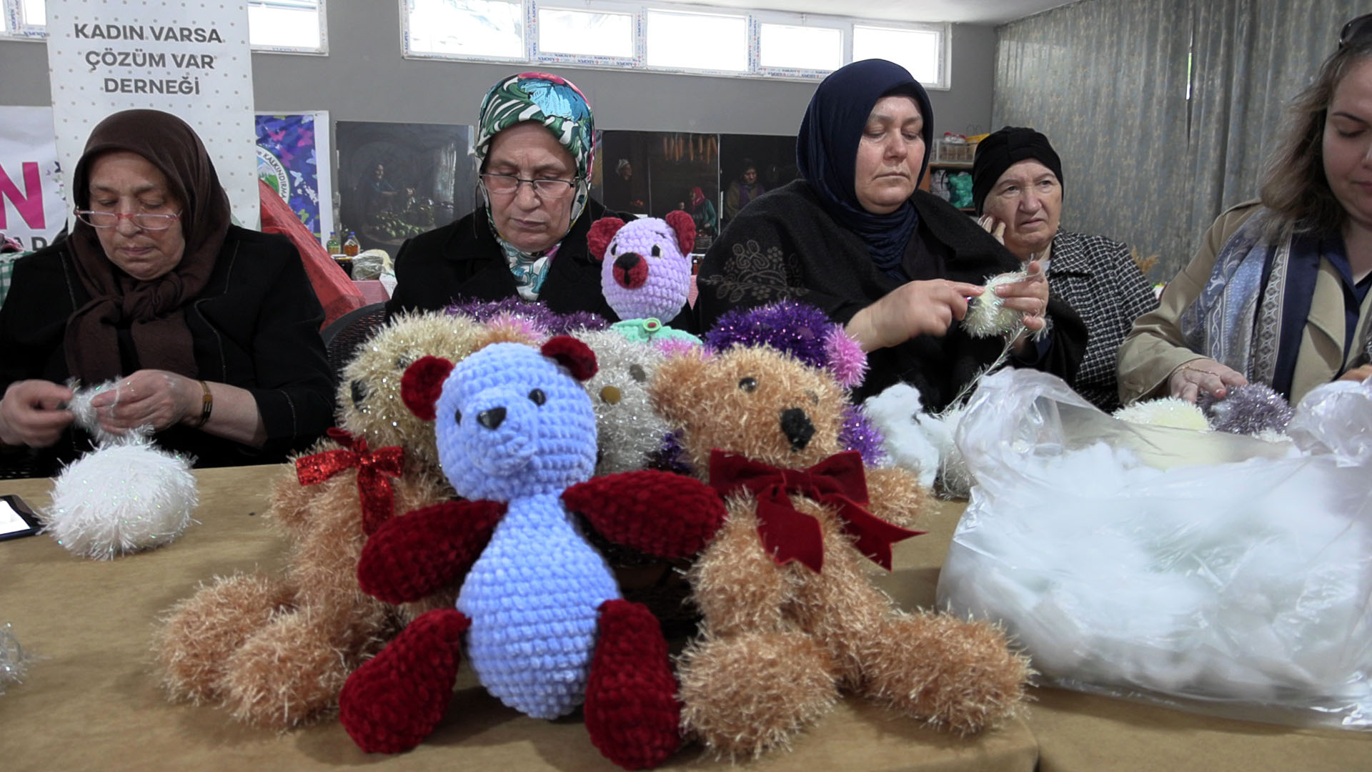 • Trabzon'da Kadın Varsa Çözüm Var Derneği çatısı altında bir araya gelen gönüllü kadınlar, hastanede tedavi gören çocuklar için oyuncak ayı örüyor. Fotoğraf: Efnan DEMİREREN/Trabzon,(DHA)