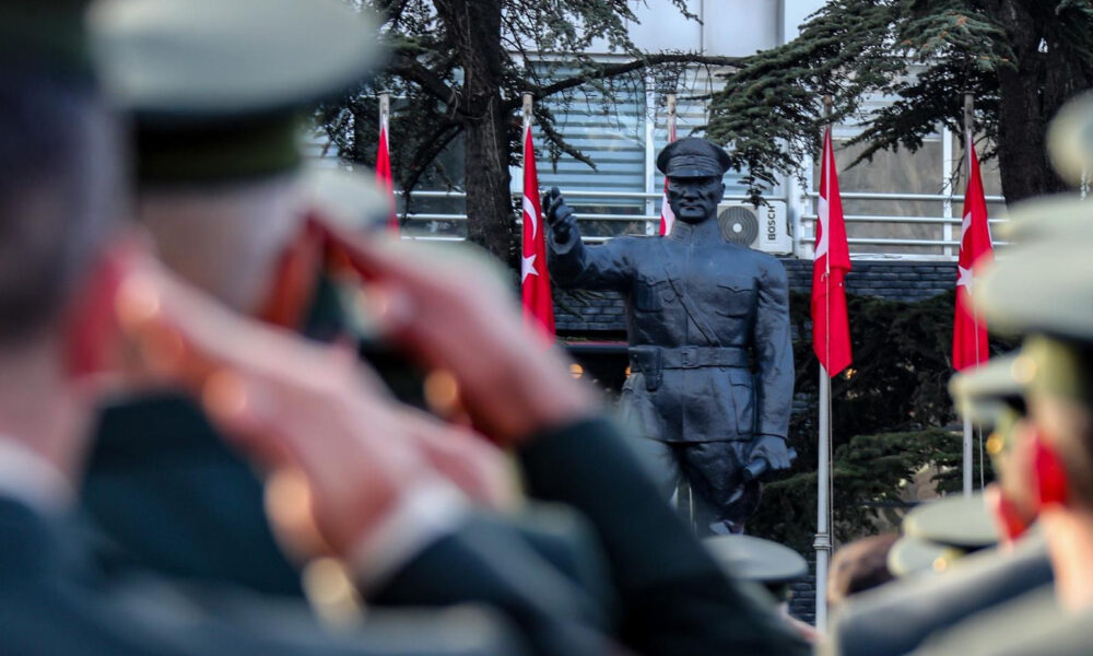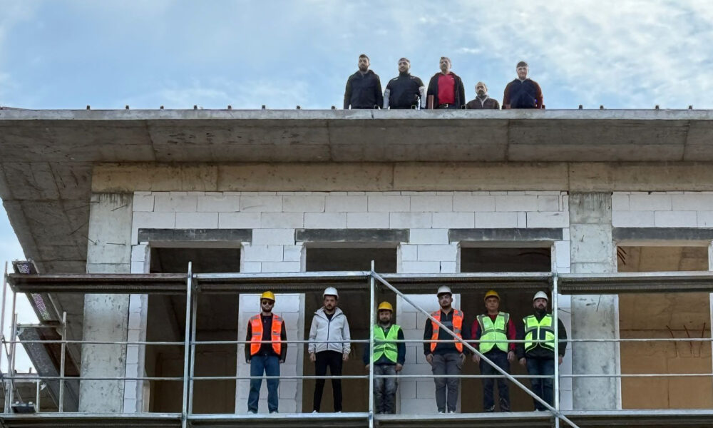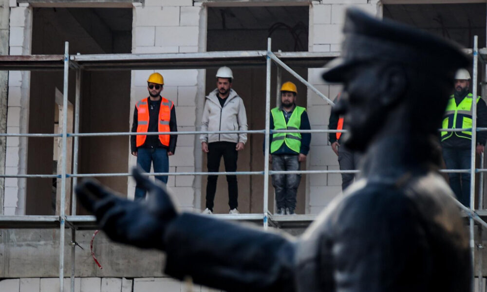 İnşaat işçileri, iskele üzerinde Ata’yı andı